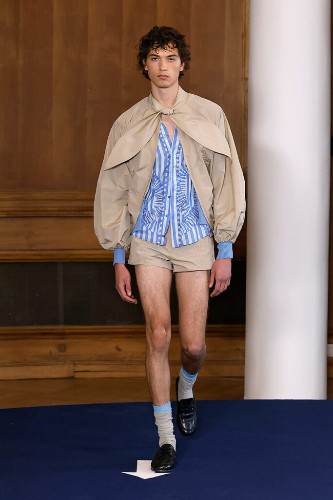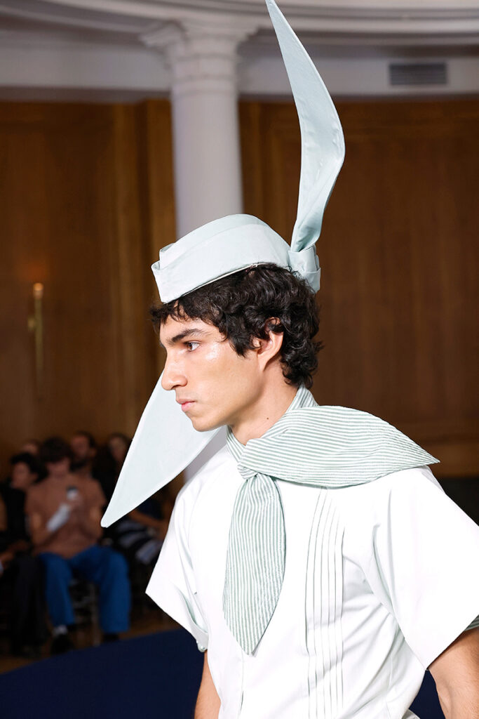 ECKHAUS LATTA unleashed its unusual silhouettes, deconstructed leg-baring, neck ties, and exaggerated embellishment!