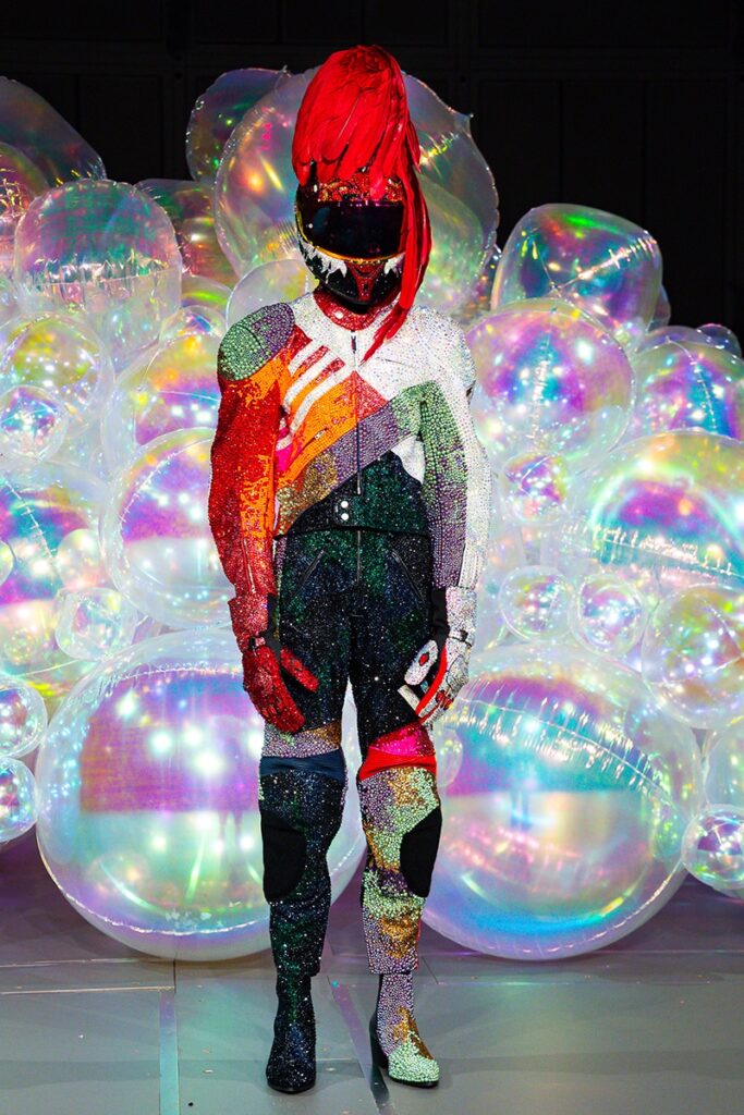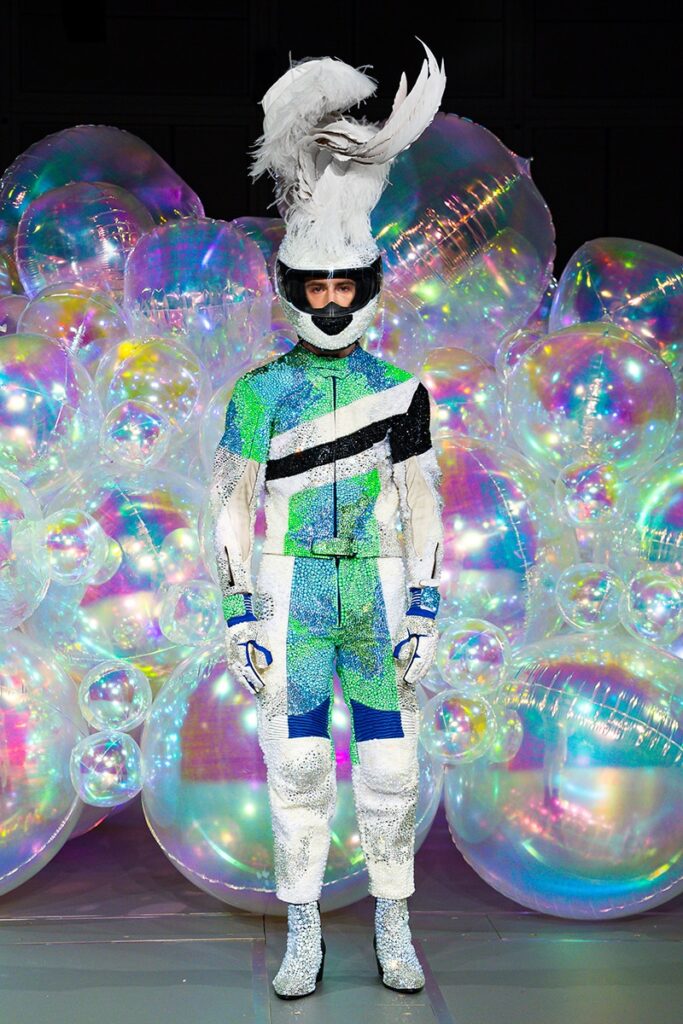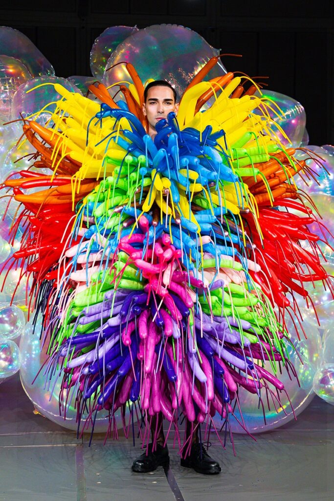 Designer Kevin Germanier leaned into instinct and play, delivering a show bursting with psychedelic textures, balloon silhouettes, and sustainably sourced materials — from recycled Japanese paper to repurposed feathers and production-reject balloons.