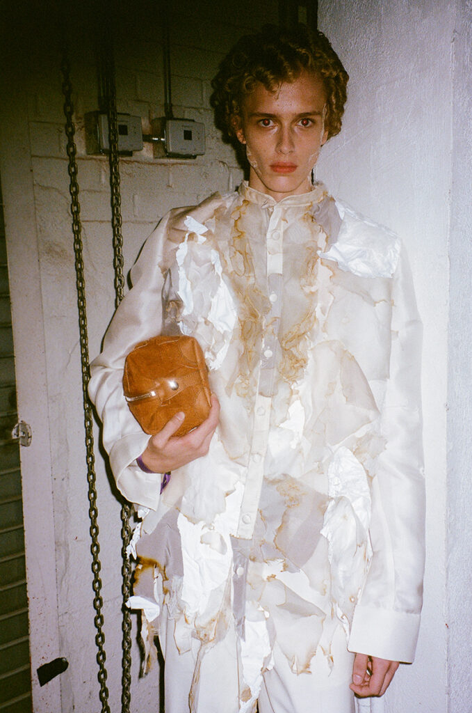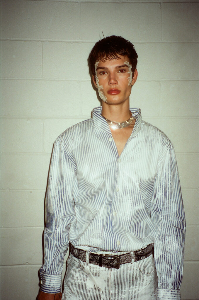 Photographed by Spencer Stovell via New York Fashion Week, the behind-the-scenes captures reveal the raw energy and sculptural finesse that define the brand’s ethos. From distressed denim to hand-painted detailing, every garment tells a story of resistance, resilience, and radical beauty.