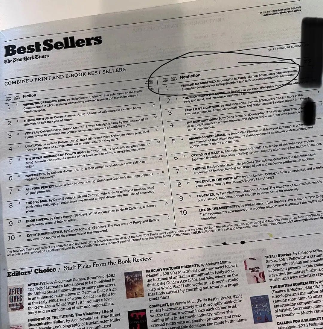 No spam. Unsubscribe anytime.“I’m Glad My Mom Died” Has Stayed In The Number One Spot For Eight Weeks