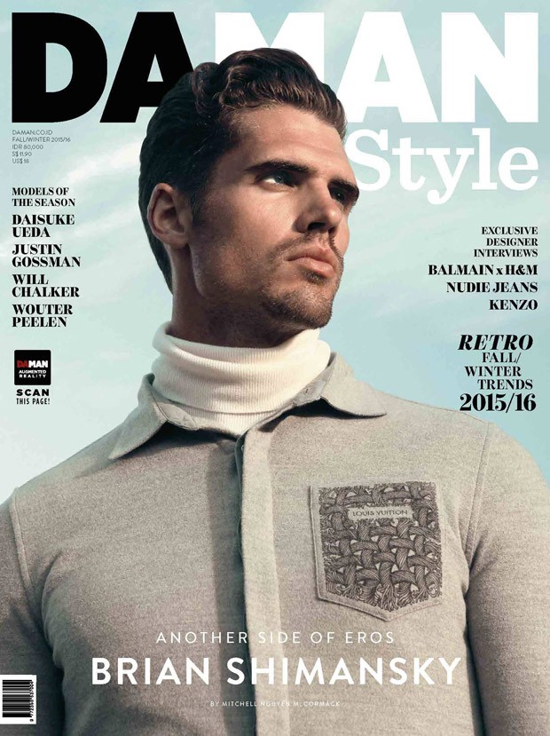 “Supermodel Brian Shimansky lands the cover story of DA MAN Style‘s Fall Winter 2015 edition captured by fashion photographer Mitchell Nguyen Mccormack at Artmix. For the session stylist Alexa Rangroummith Green (Celestine Agency) assisted by Triska Putri selected pieces from the likes of Louis Vuitton, John Hardy, Calvin Klein, Tudor, and Etro. Grooming is courtesy of Yeanne and Team.