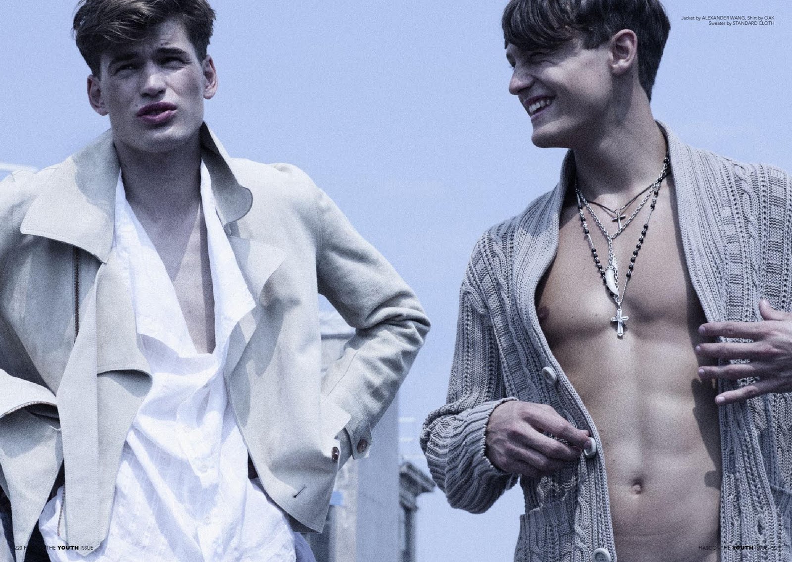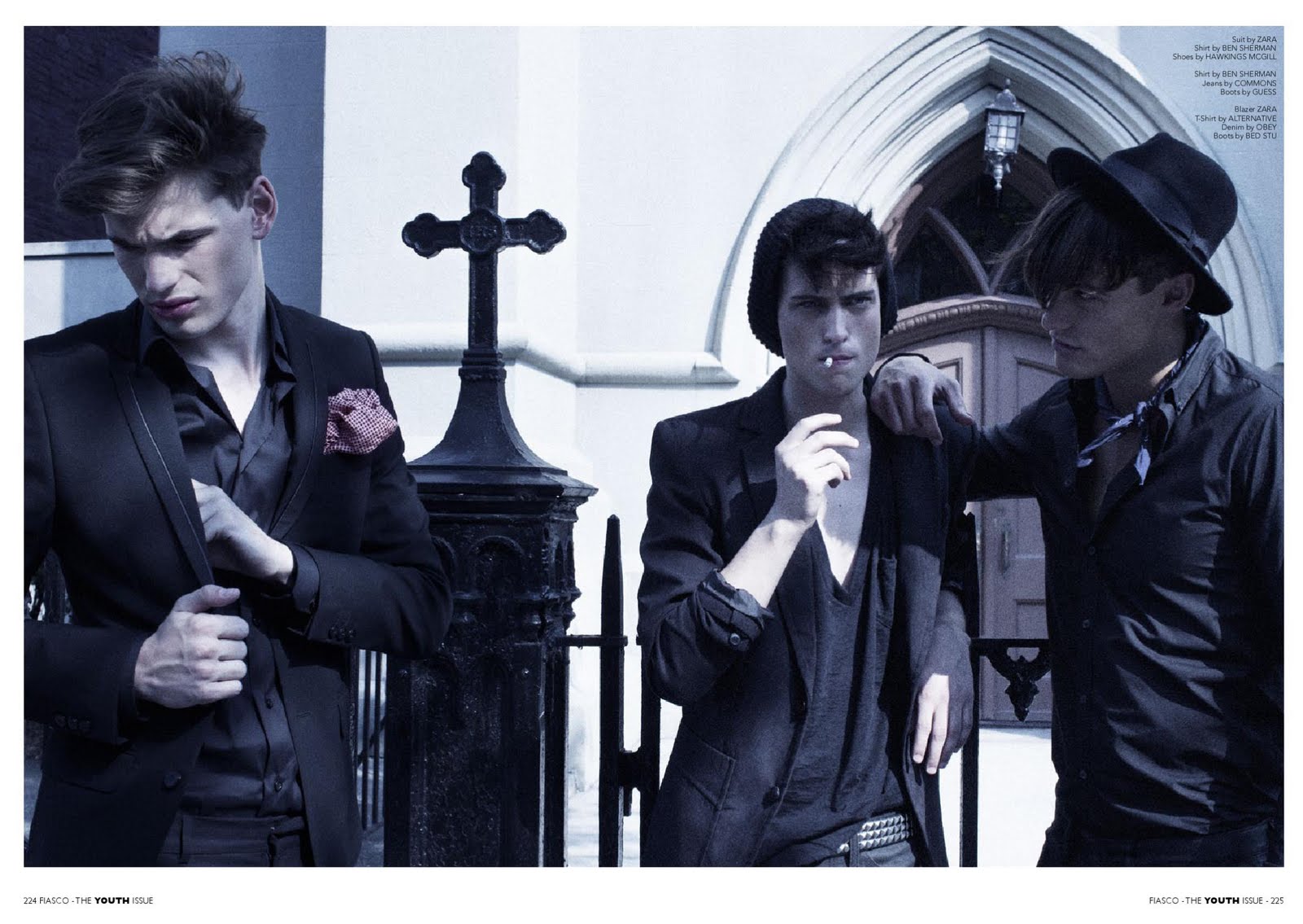 Casey Brooks photographs Casper, Felix and Brayden in this homoerotic shoot for Fiasco’s Youth Issue while Chichi and Ogo Offodile style the trio in light Autumn-wear from Zara and Ben Sherman. Courtesy of – hommemodel.blogspot.com