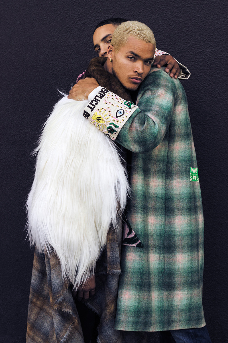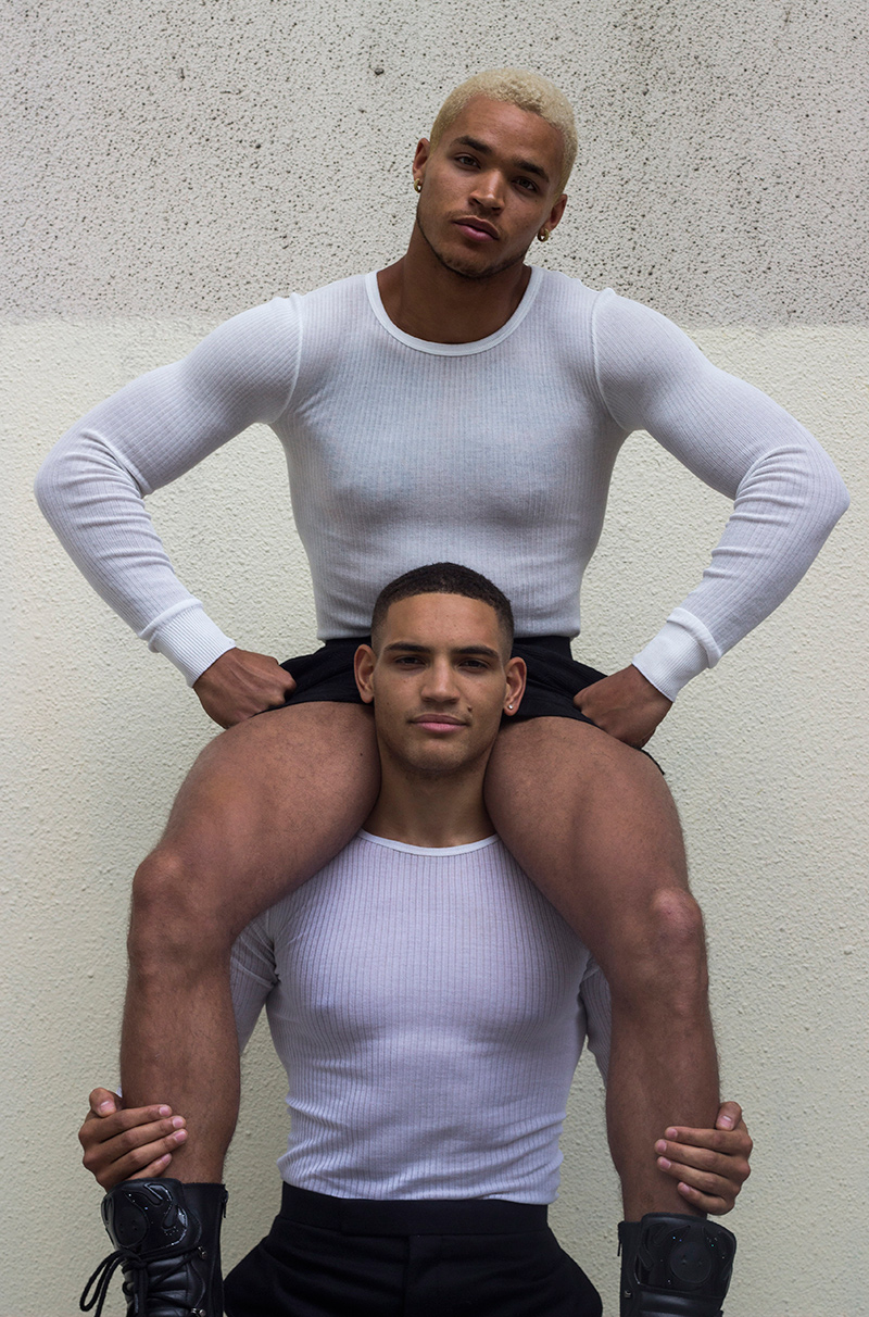 “Simon Adde at Rockmen and Florian Kiniffo photographed and styled by Stéphane Gaboué, with pieces from Walter Van Beirendonck, Faith Connexion, Calvin Klein, Christophe Lemaire x Uniqlo and Thom Browne, in exclusive for Fucking Young! Online.