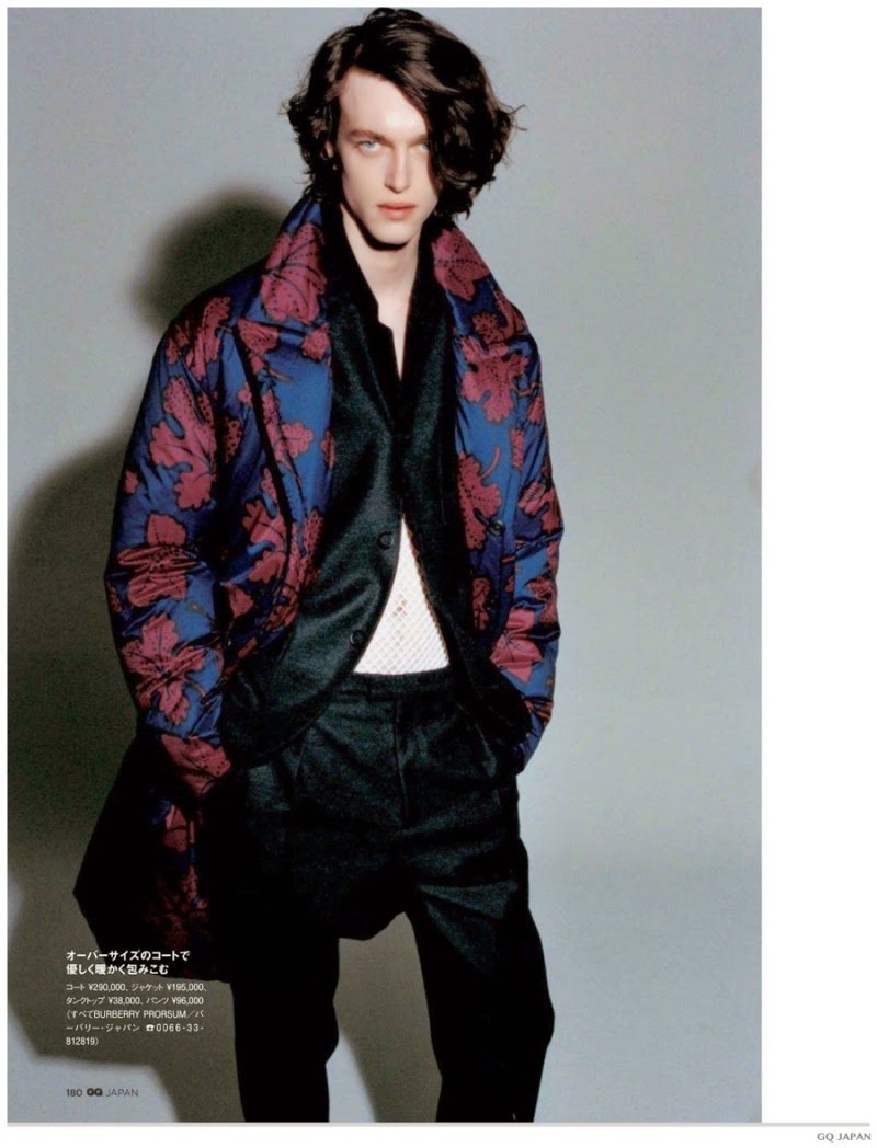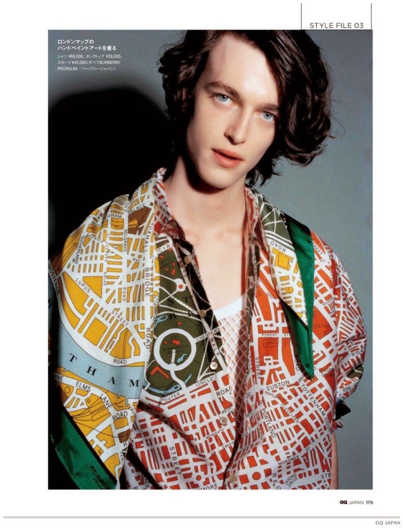 Print Power-The November 2014 edition of GQ Japan gets a boost of power in the print department thanks to a sharp fashion spread focused around the fall-winter 2014 collection of Burberry Prorsum. Stepping into the studio with photographer Yasutomo Ebisu, model Reuben Ramacher wears printed fashions from the range that highlight Burberry’s signature checks, autumn leaf prints and old maps of London.