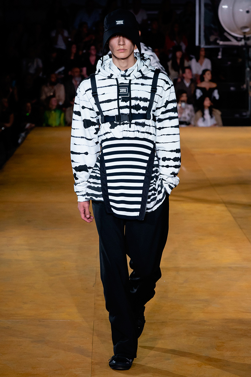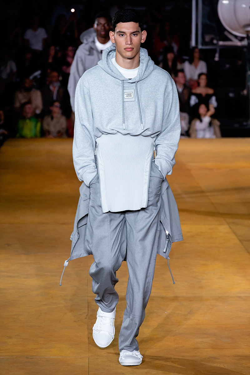 Defining “Burberry as a lifestyle”, the label urged to keep the British heritage intact by proposing an overall unconventional push in terms of silhouettes: experimentation was a key noticeable component, as a sequence of looks and apparel styles juxtaposed between one another. The rising of streetwear, however, comes in handy for the label attracting several audiences, with an increasing aim pointed at younger as well as future generations, pioneering a new way forward.