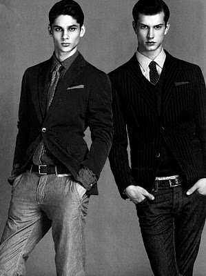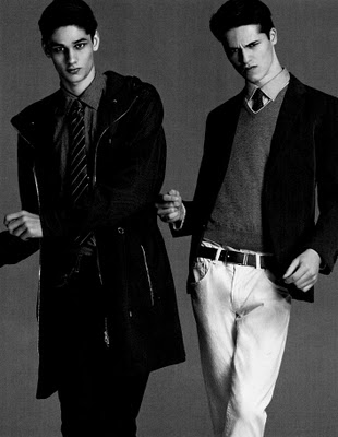 ‘ But seriously…” is the title of this black&white edit by Andre Tenerani featuring Arthur Daniyarov, Theo Hall and Sven Guhle groomed by Franco Chessa and shot by Emilio Tini for the current issue of the Italian GQ Style.’ – morphoman.blogspot.com