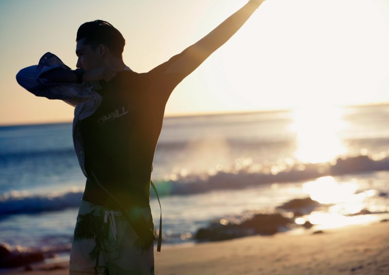Surfer Boy–Photographed by Fred Jacobs, Caleb Trent stars in a relaxed editorial from this past month’s edition of Spray magazine. Tackling an inspired surfer look, wet suit and all, Caleb is outfitted by stylist Shala Rothenberg. Courtesy of – Homotography