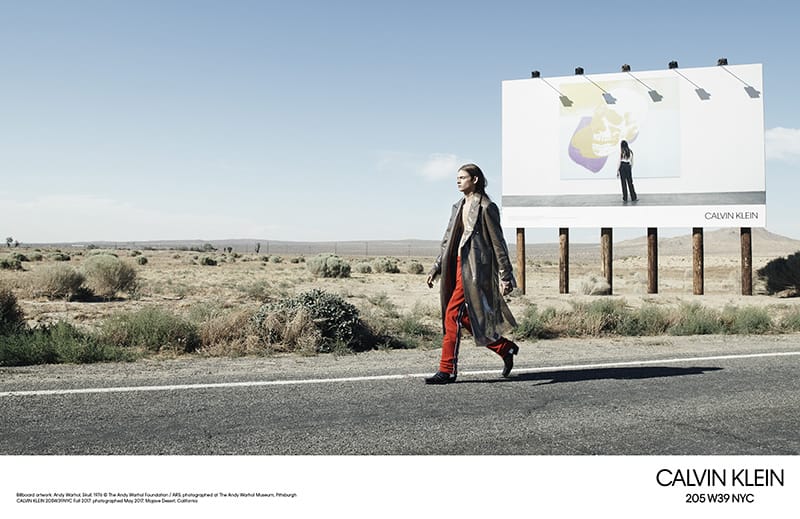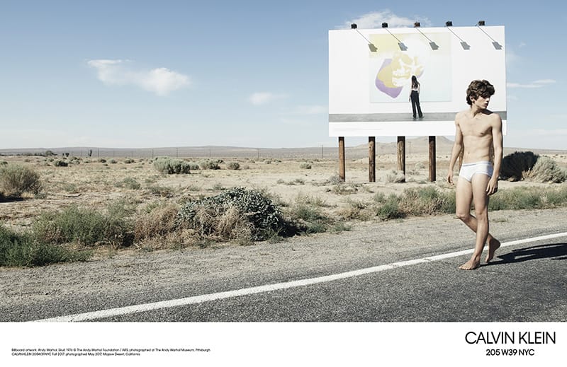 Shot by photographer Willy Vanderperre, the visually striking campaign presents a cast of 22 models shot against a series of billboards that feature images from last season’s CALVIN KLEIN: American Classics campaign. The billboards of the previous campaign – which include works by artist Andy Warhol – were erected in the California desert in the days leading up to the shoot.