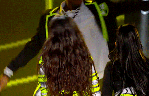 Wearing a neon green checked uniform complete with knee-high socks, Camilla looked incredible with a team of backing dancers surrounding her.