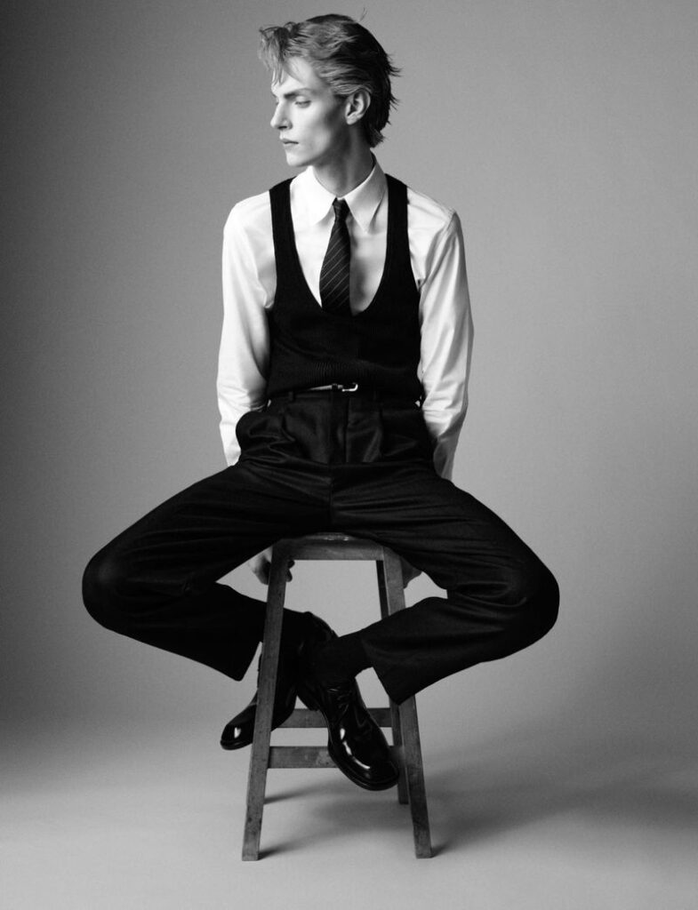 The editorial captures Alvar af Schultén’s striking presence and the innovative fashion styles that define modern masculinity.