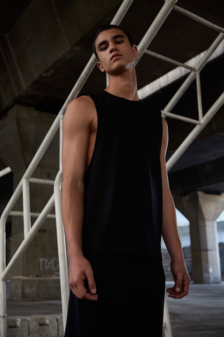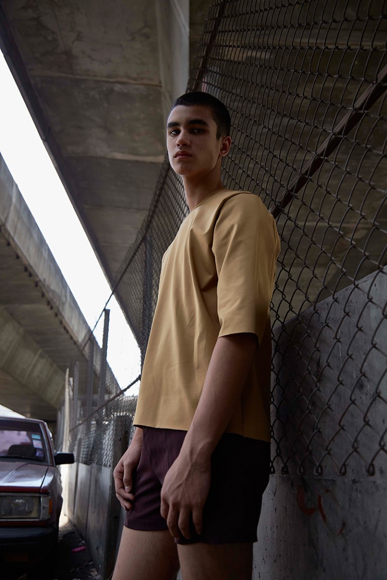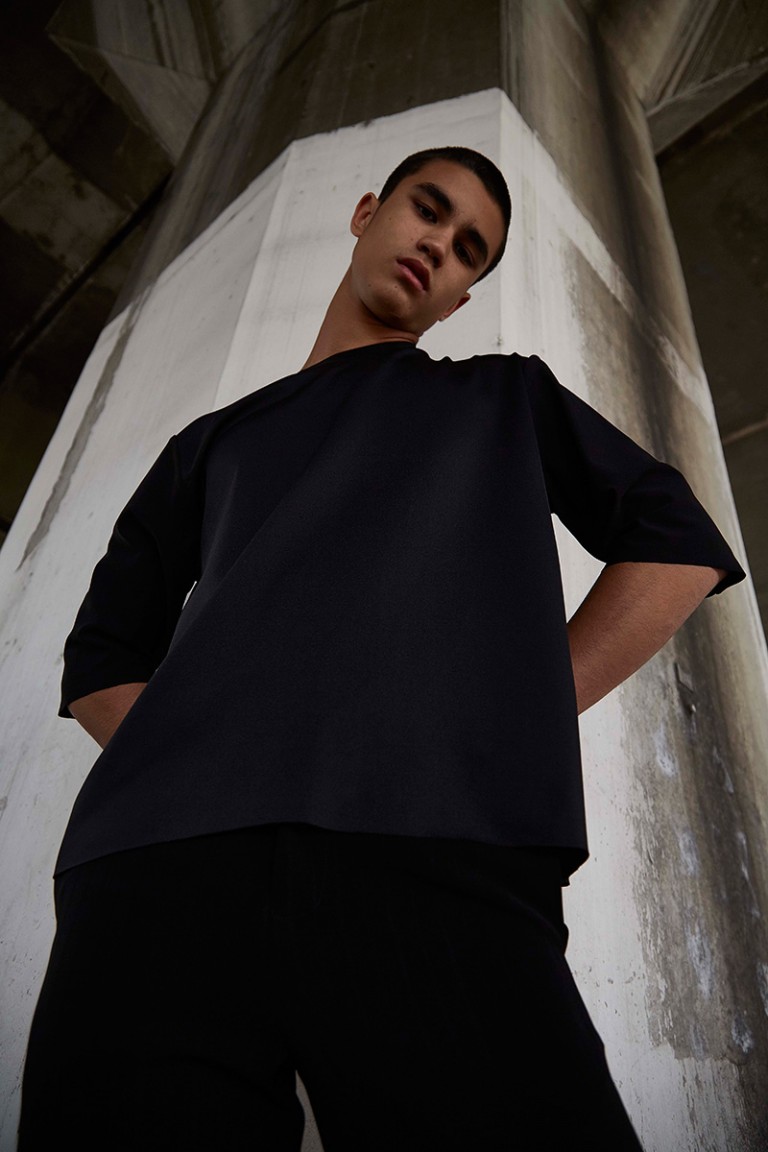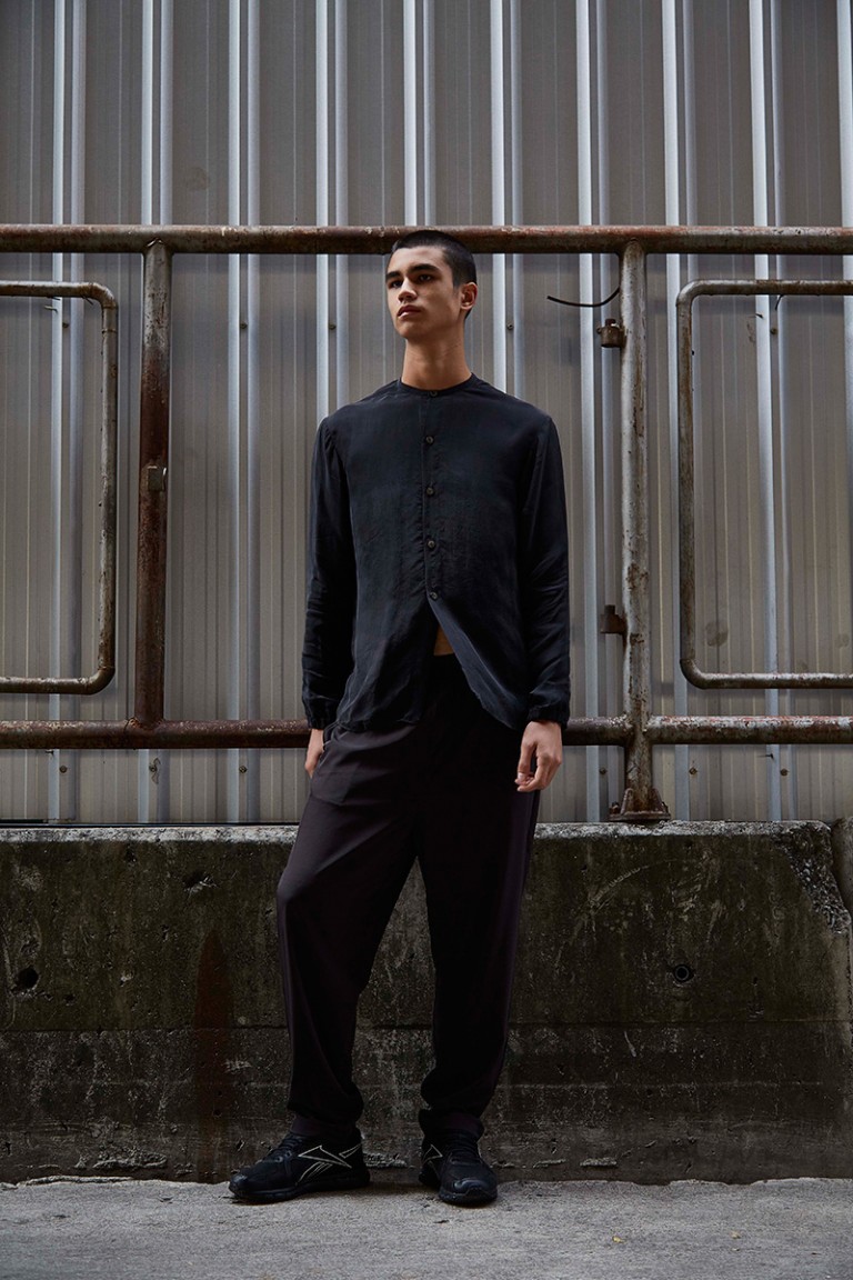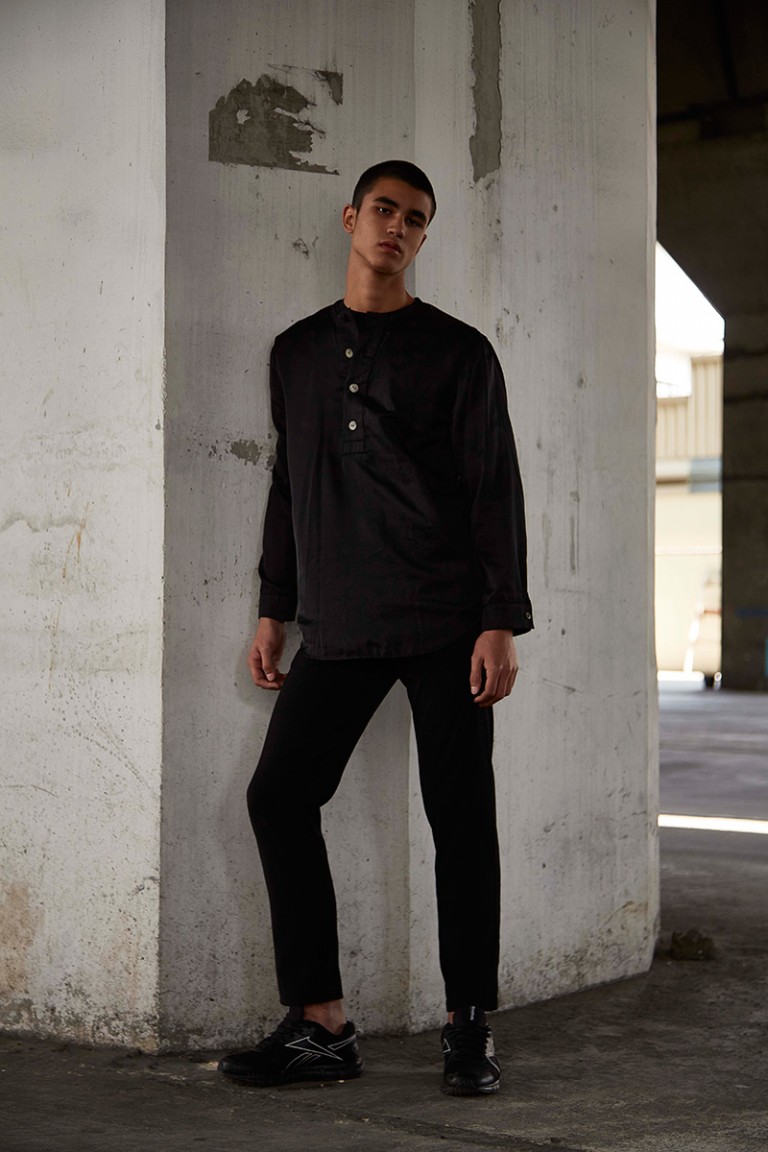 “Carbon released its Spring/Summer 2016 lookbook, featuring Alessandro Bisogni shot by Nucha Jaitip. The designer was inspired by the images of children during the industrial revolution, all looking dusty in their daddy’s size clothing. Dropped-crotch with floor-length trousers and lightweight-satin collarless shirt, which gone faded and wrinkly from time-to-time wear become this collection’s key looks’.” – FY Magazine.es