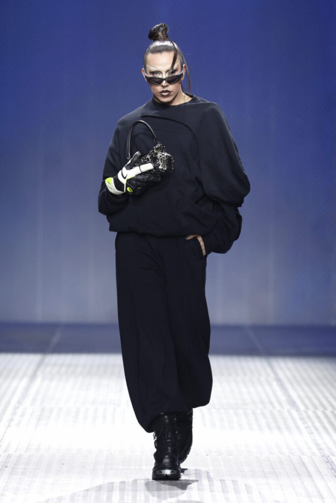 The theme? A delicious fusion of 1990s sci‑fi energy and the aesthetic of the first 3D video games ever invented. Think polygonal silhouettes, cosmic palettes, and garments that feel like they were rendered straight out of an early‑era console — but elevated, couture‑coded, and runway‑ready.
