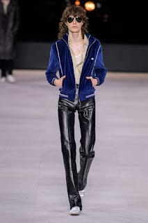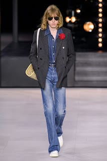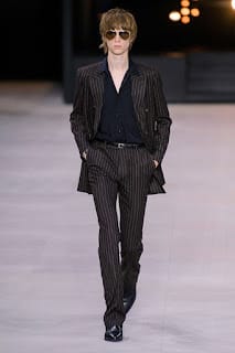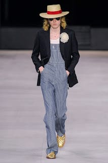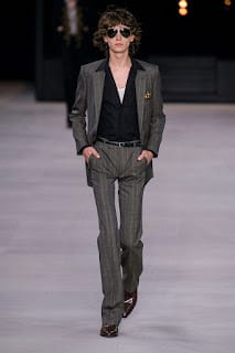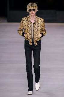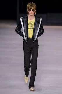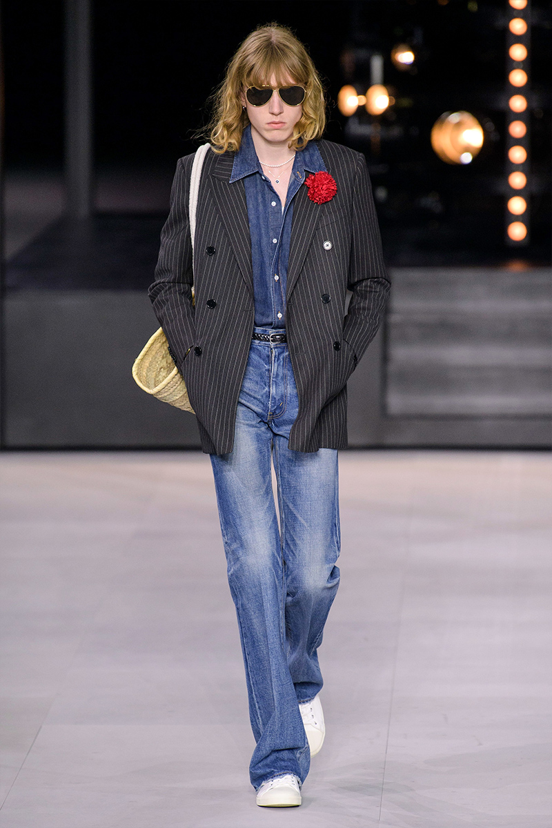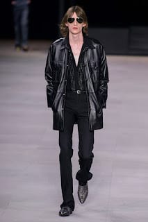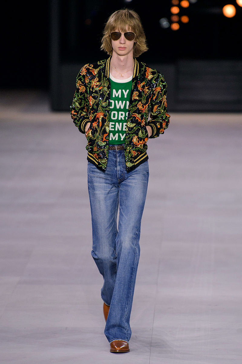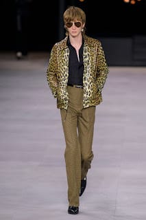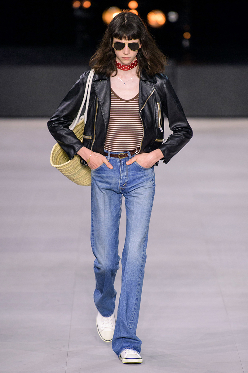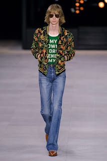 Fringed models strutted down the runway like a mob of Californian mods. A mix of sequenced knits, suits and animals conjured up imagery of the iconic Chateau Marmont, having never been there myself. Drainpipe trousers reminiscent of my ten years challenged were paired with everything from cropped jackets to Steven Tyler scarves or in France they would be Serge Gainsbourg. Slimane is great at keeping with his aesthetic while introducing new pieces like straw baskets with unforgettable phrases such as “My Own Worst Enemy”.