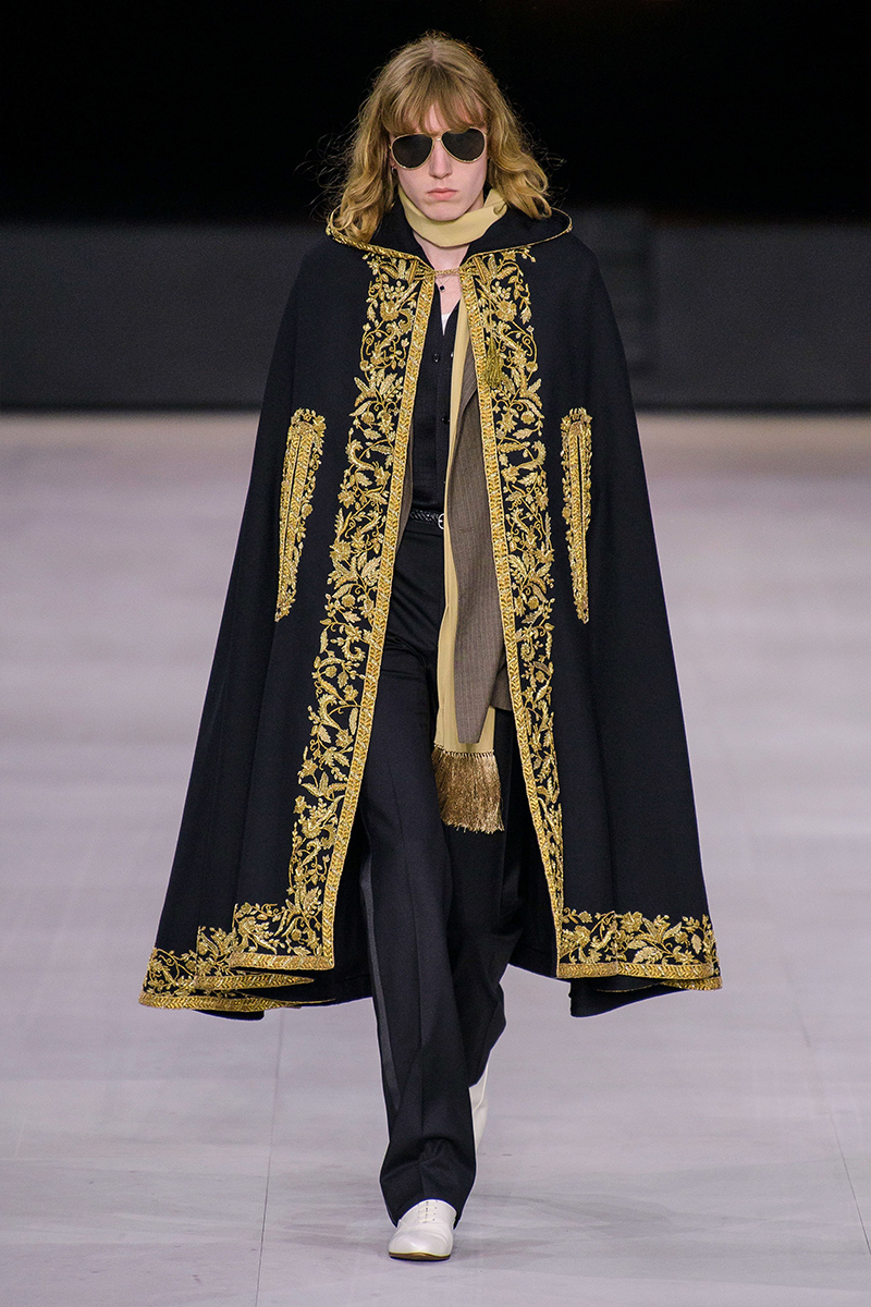 “Stealing the show was the new laid back business cool, straight jeans paired with a tie and the tour de force, a black cape with gold embroidery.” – FY Magazine.es