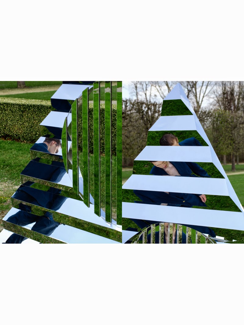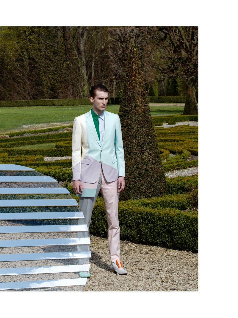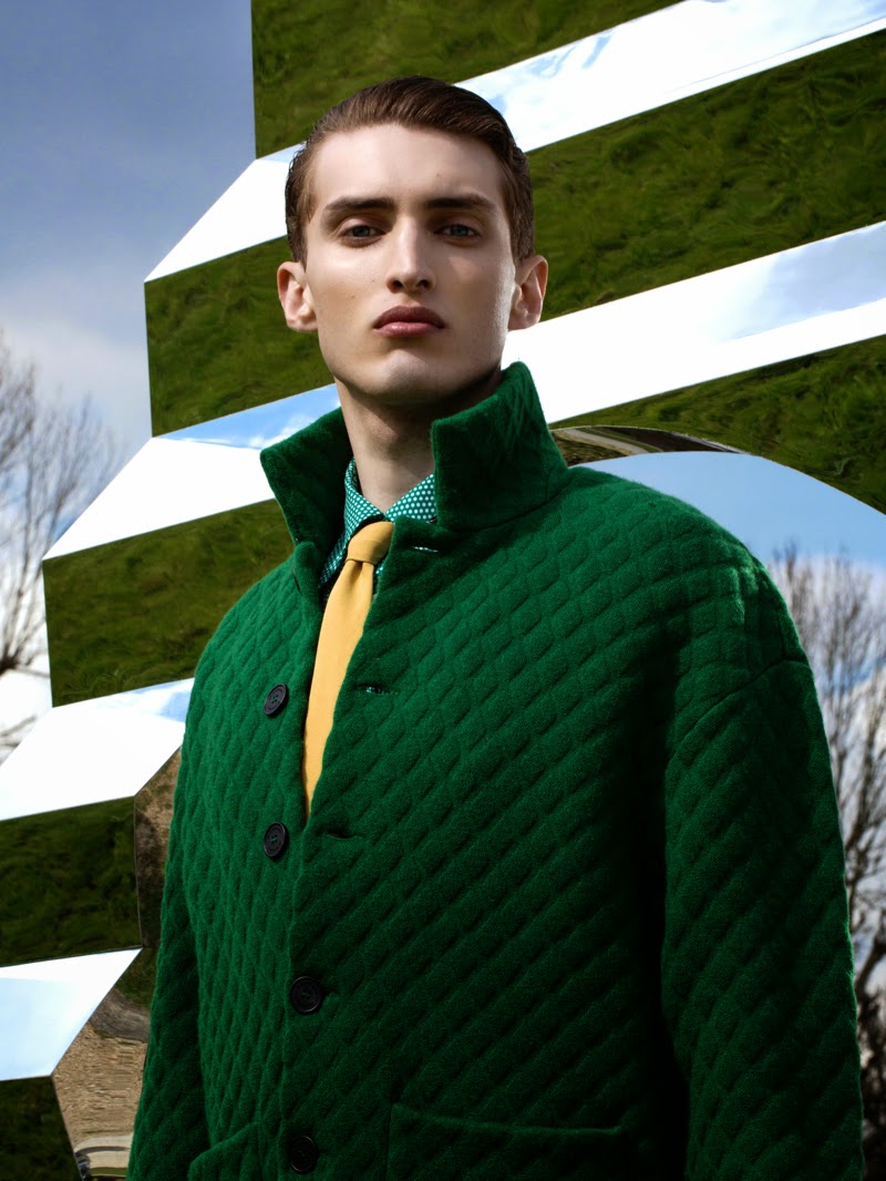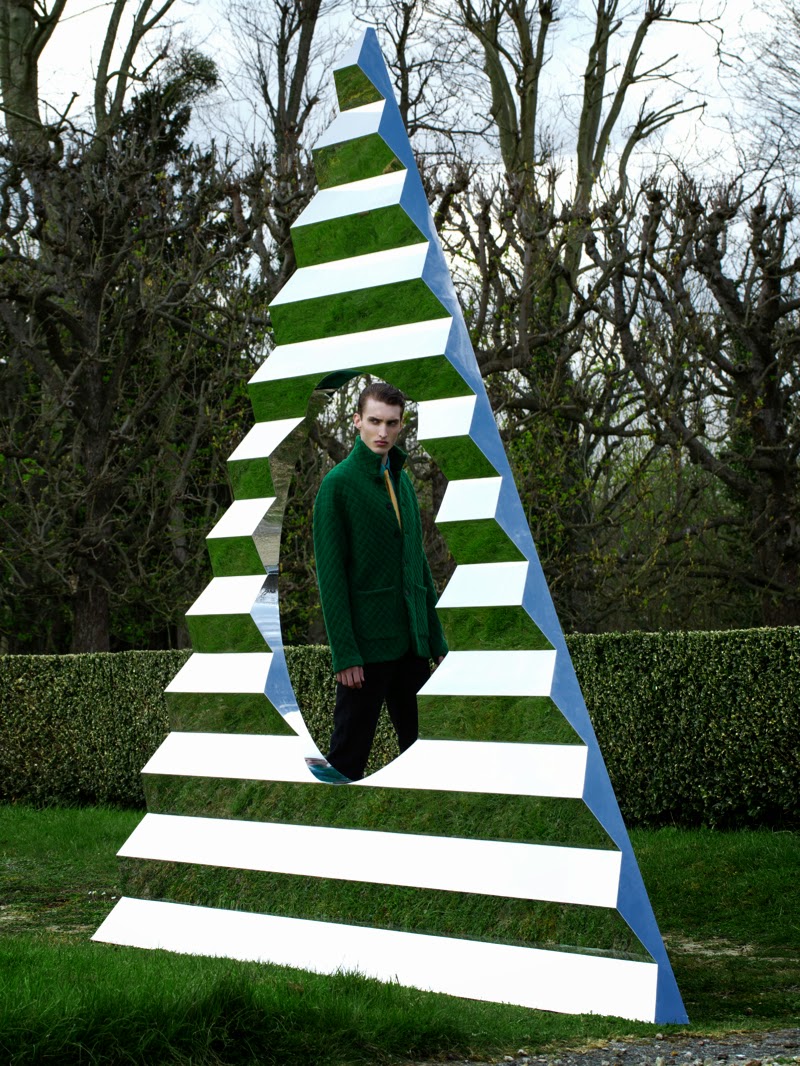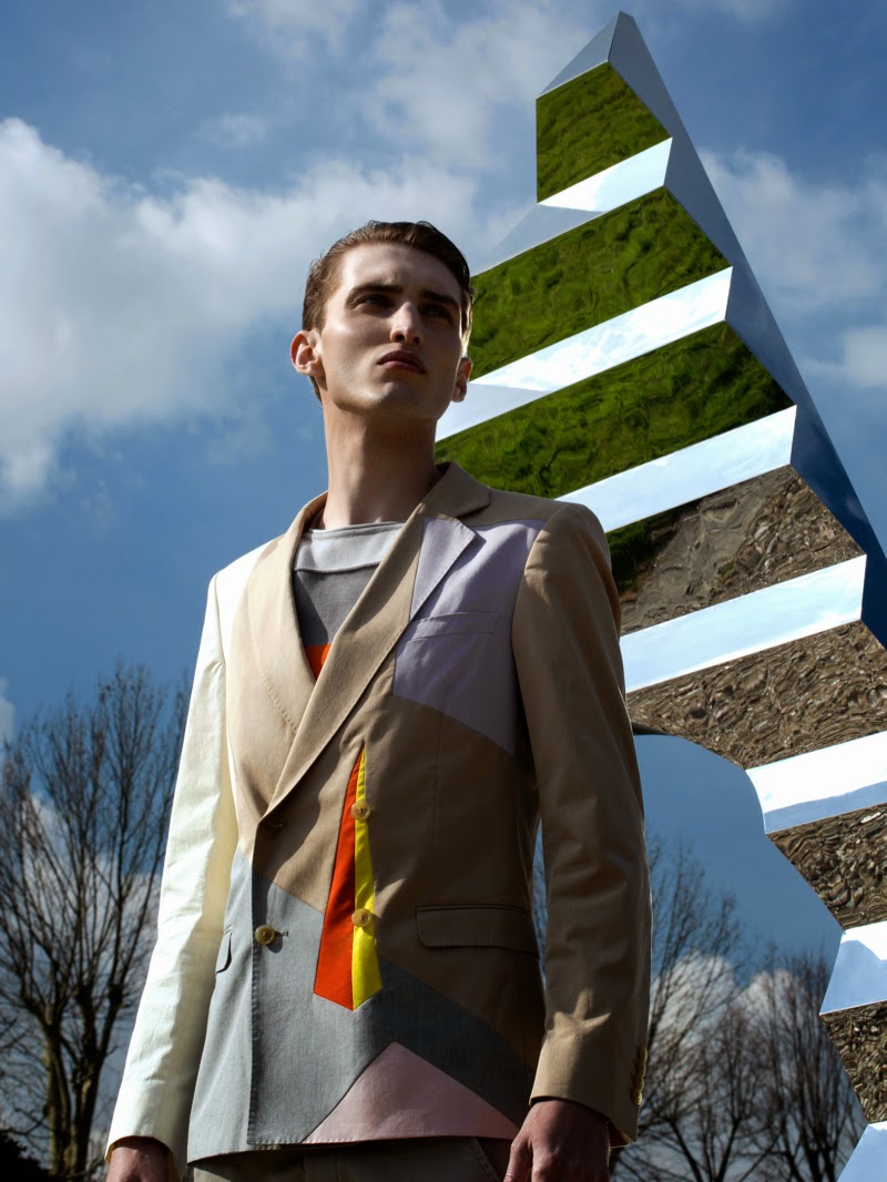 “False Mirror–Dressed in garments and accessories from the spring/summer 2014 collections of Burberry Prorsum and Walter Van Beirendonck, British model Charlie France appears in the cover story for the latest edition of FHM Collections China. Photographed by Jumbo Tsui with styling by Shuo Yuan Hasegawa, Charlie is an abstract vision in bright vibrant bursts of color. / Grooming by Yann Boussand Larcher. Set design by Jumbo Tsui and Ruofan Shen.” – The Fashionisto