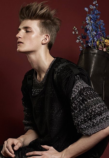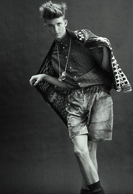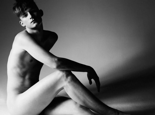 Charlie Westerberg, a Swedish model, shows off in his birthday suit, and below is a feature in Bon magazine, both by photographer Peter Gehrke.