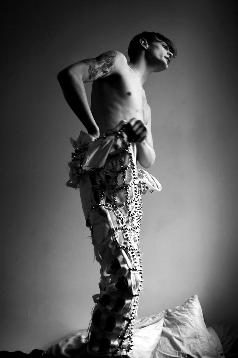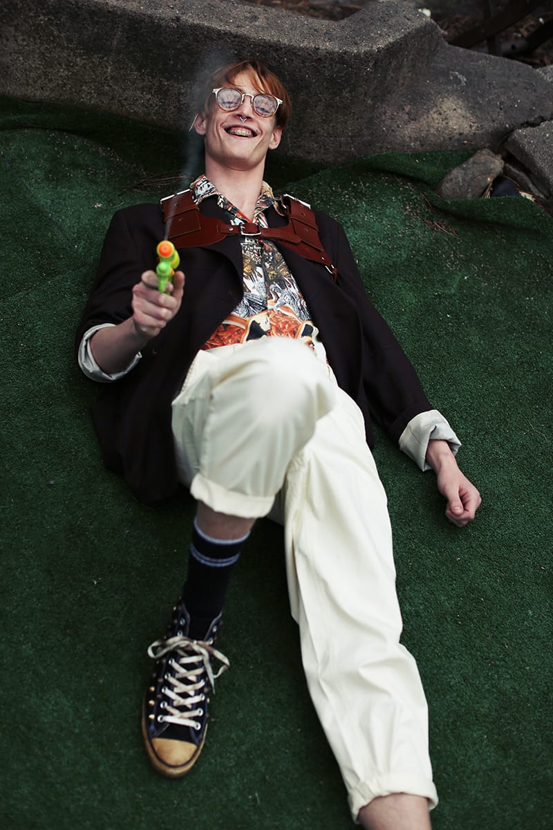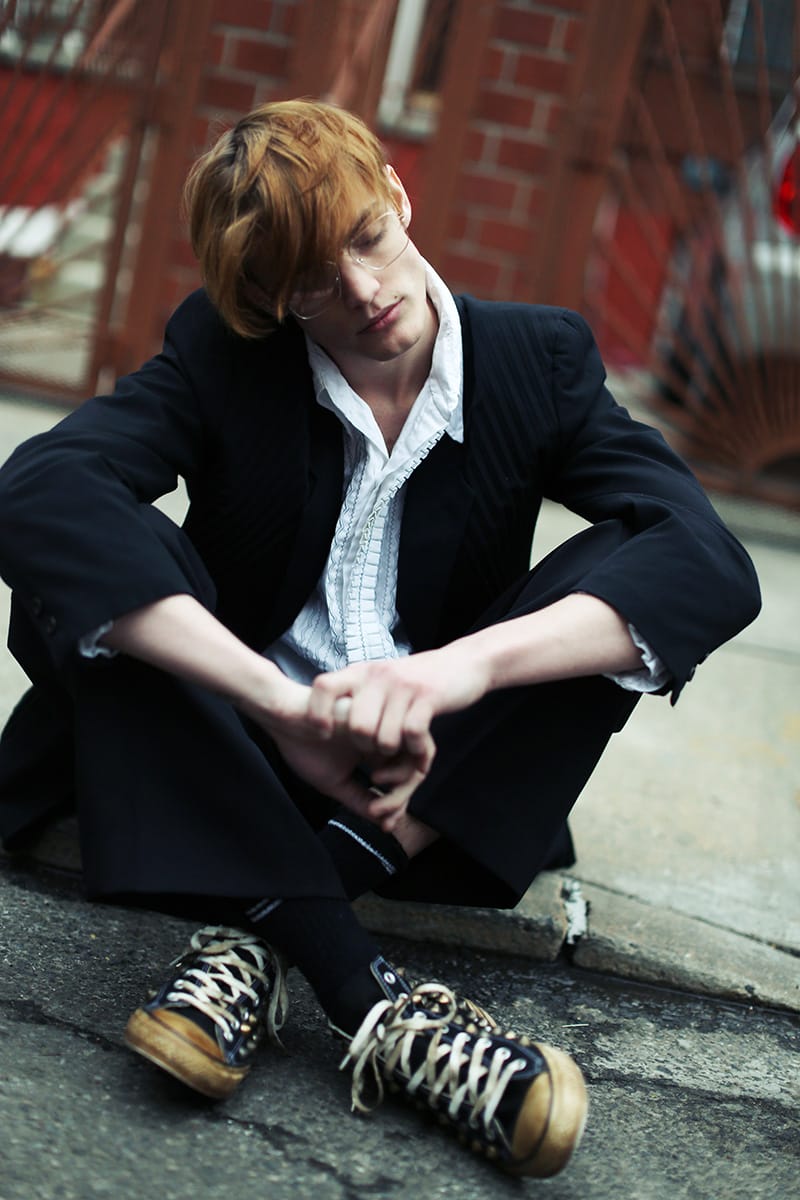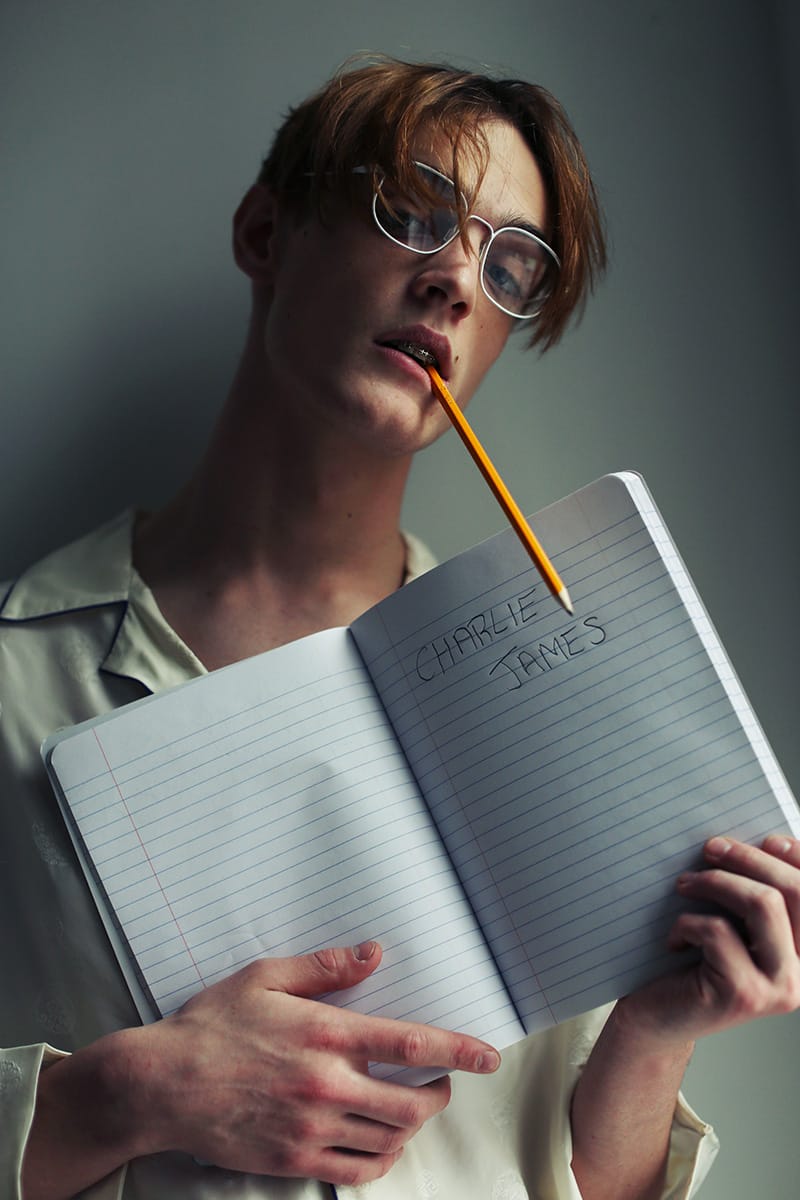 “Charlie James at Fusion photographed by Hadar Pitchon and styled by Marc Anthony George with pieces from Search and Destroy NYC, Versace, Screaming Mimi’s Vintage, Retrosuperfuture, Jean Paul Gaultier, Moschino, Mimi Prober and more, in exclusive for Fucking Young! Online.