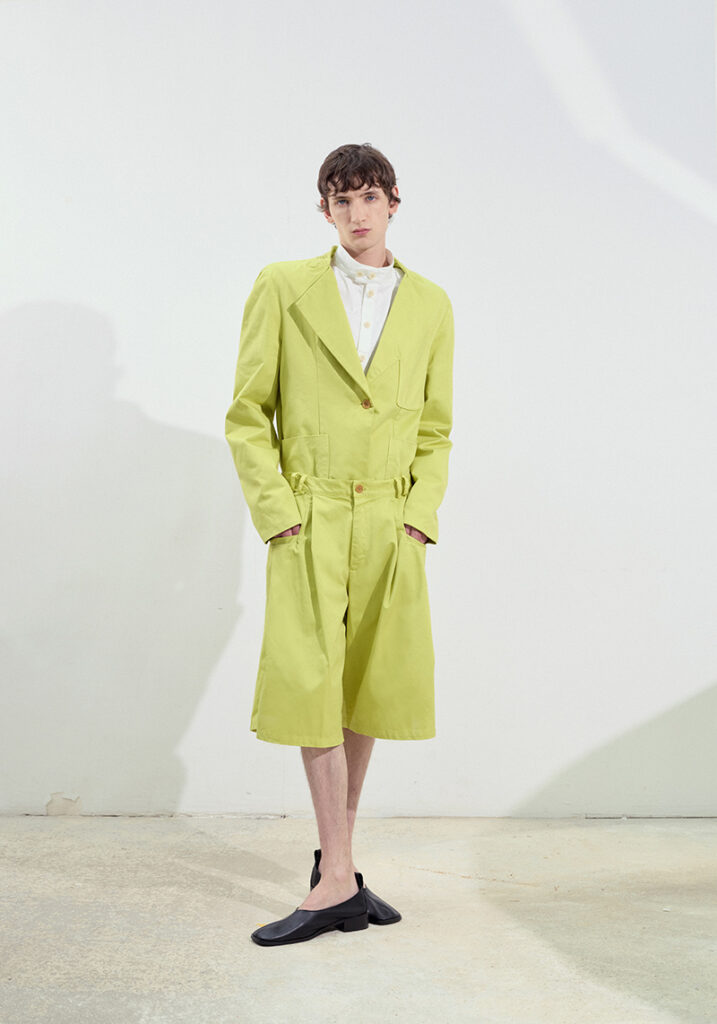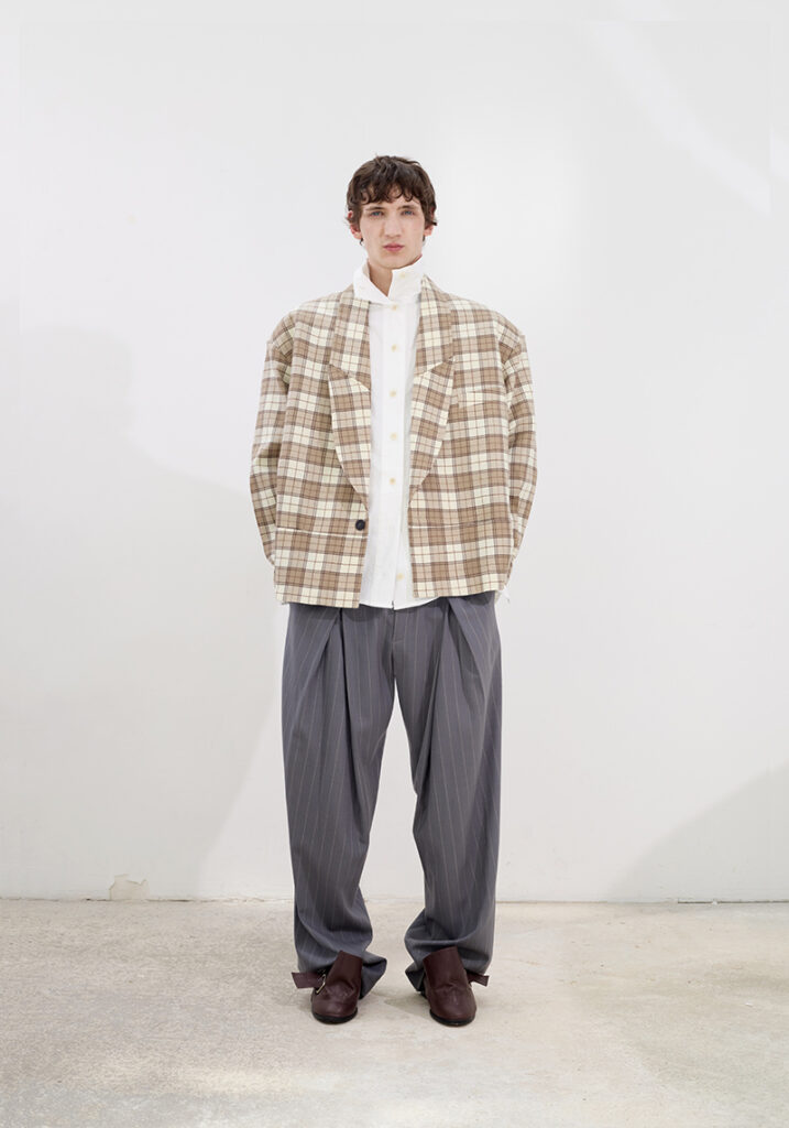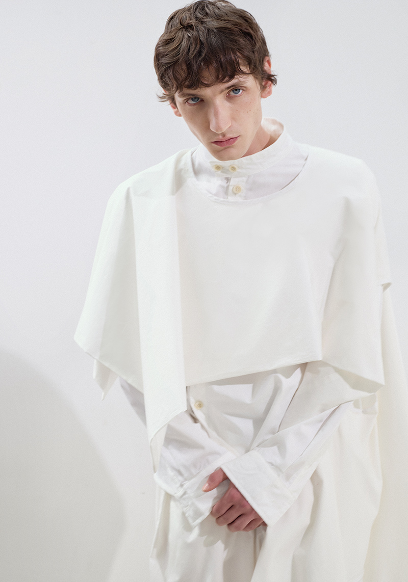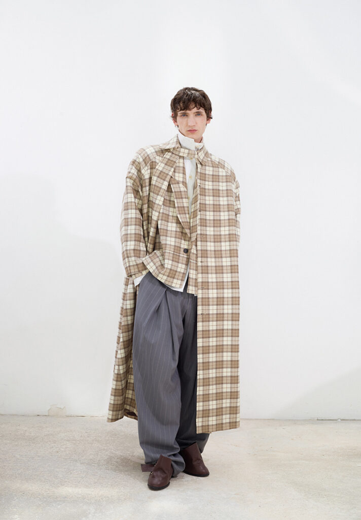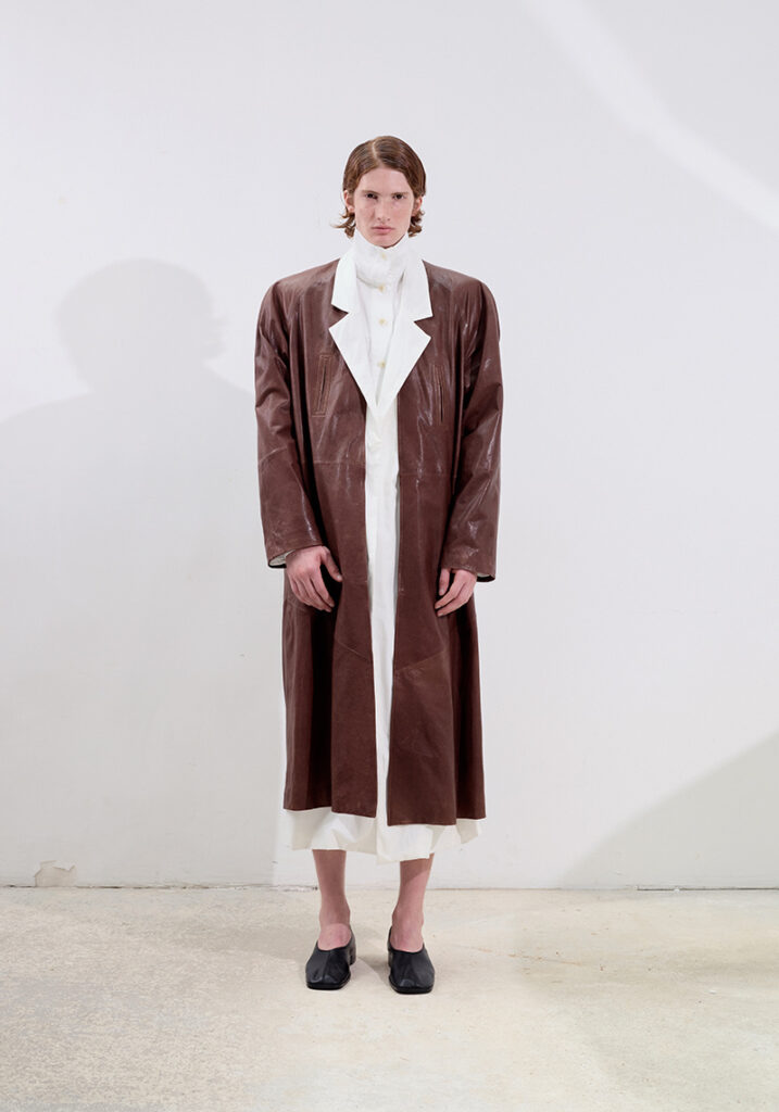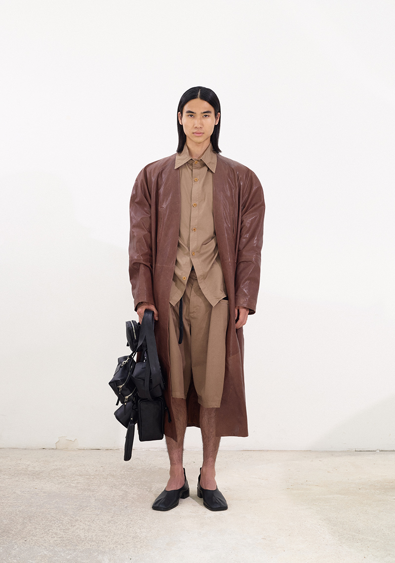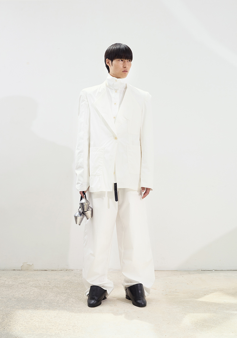 The lookbook captures this tension beautifully: crisp aprons reimagined as outerwear, chore coats with exaggerated collars, and trousers that nod to both function and form. It’s a study in status, visibility, and the emotional labor stitched into every seam.