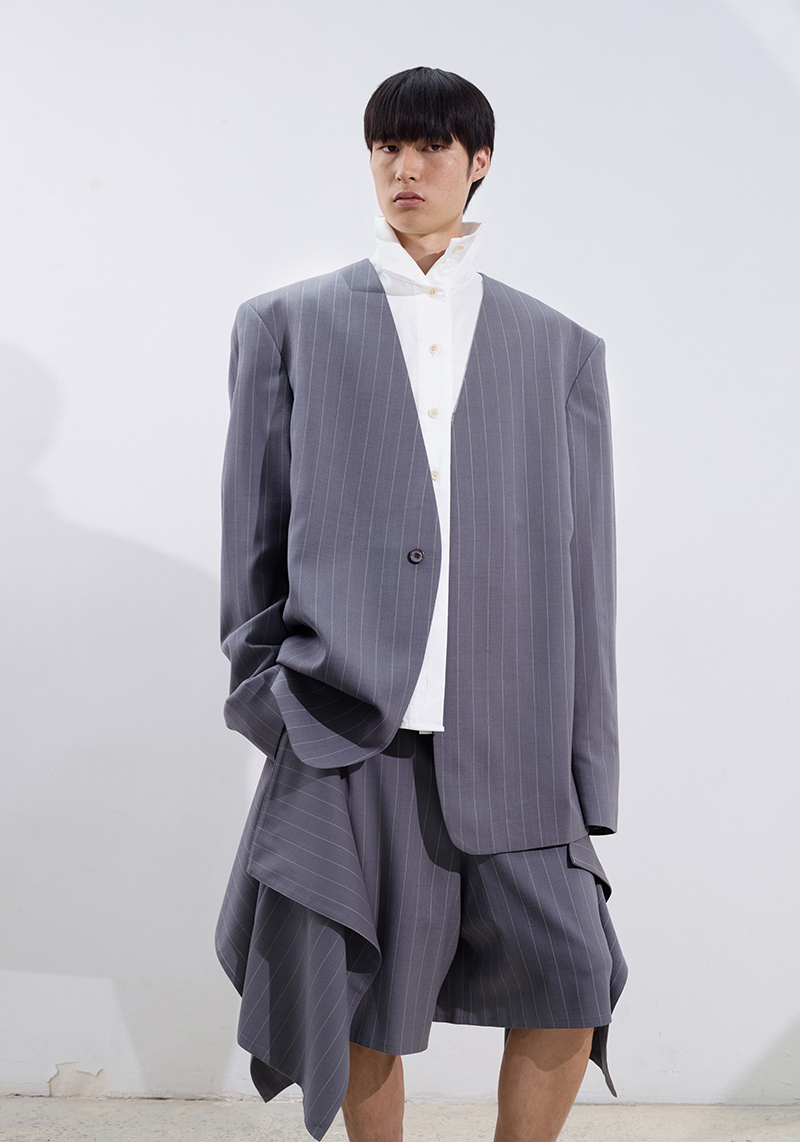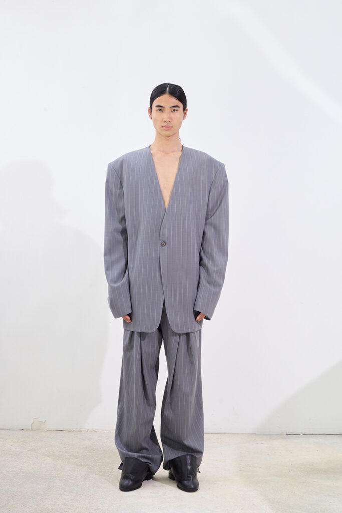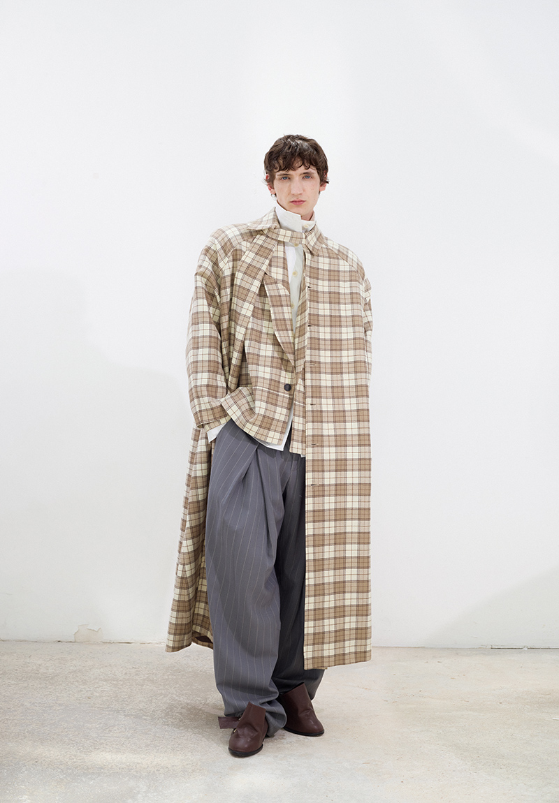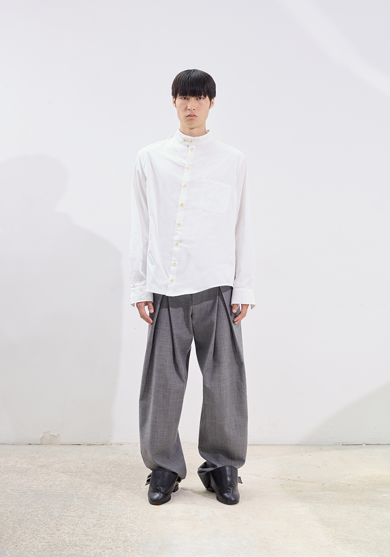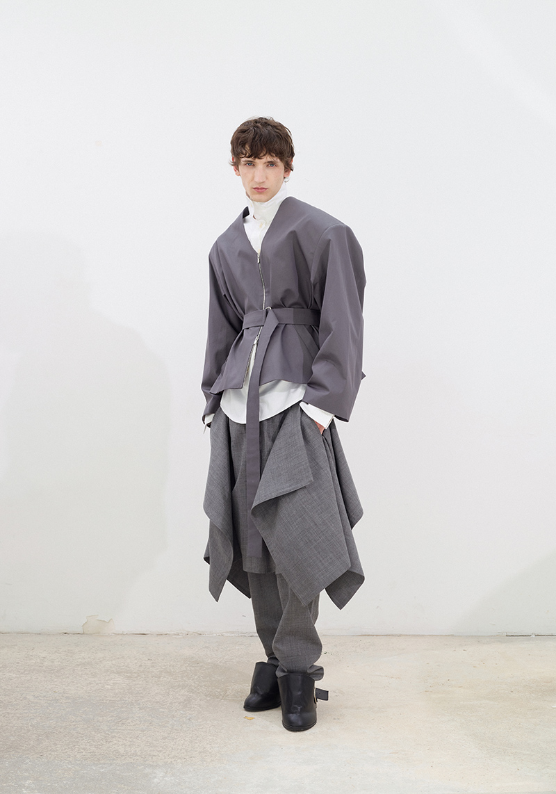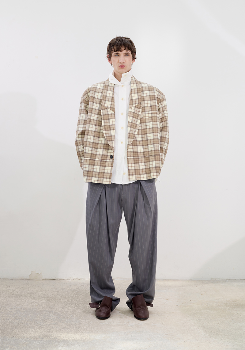 The lookbook captures this tension beautifully: crisp aprons reimagined as outerwear, chore coats with exaggerated collars, and trousers that nod to both function and form. It’s a study in status, visibility, and the emotional labor stitched into every seam.