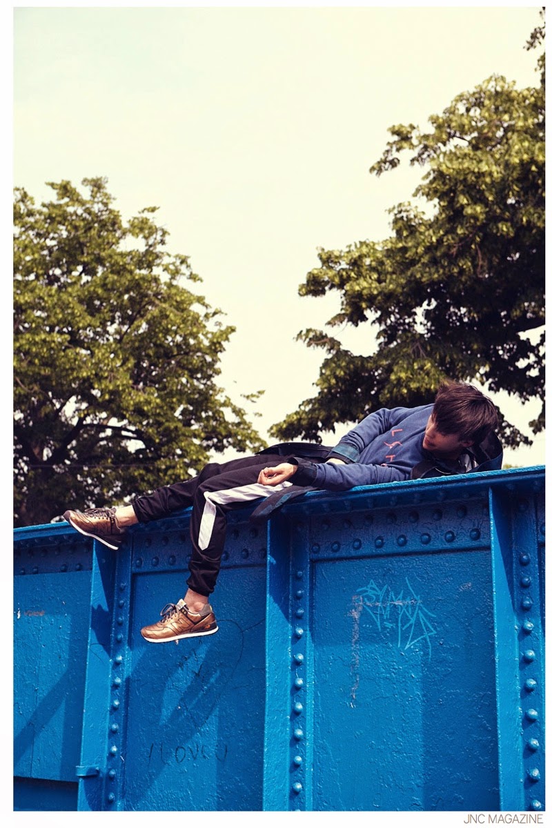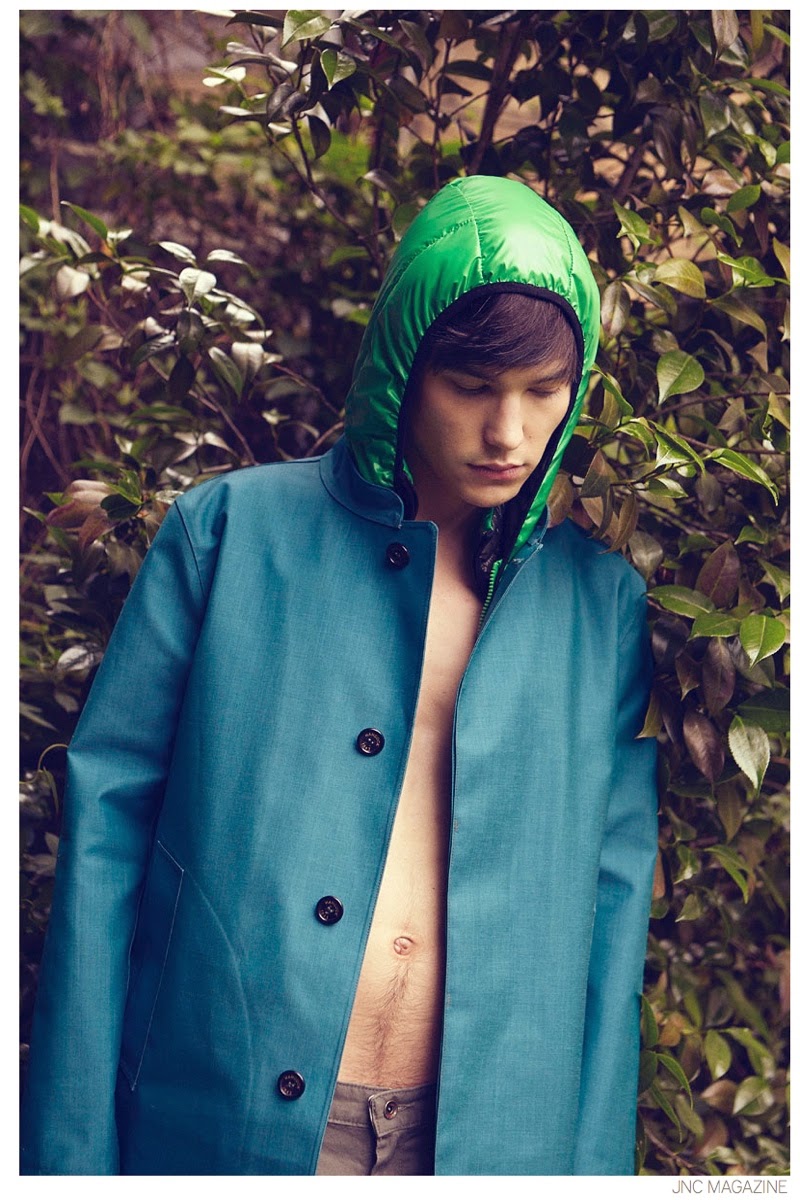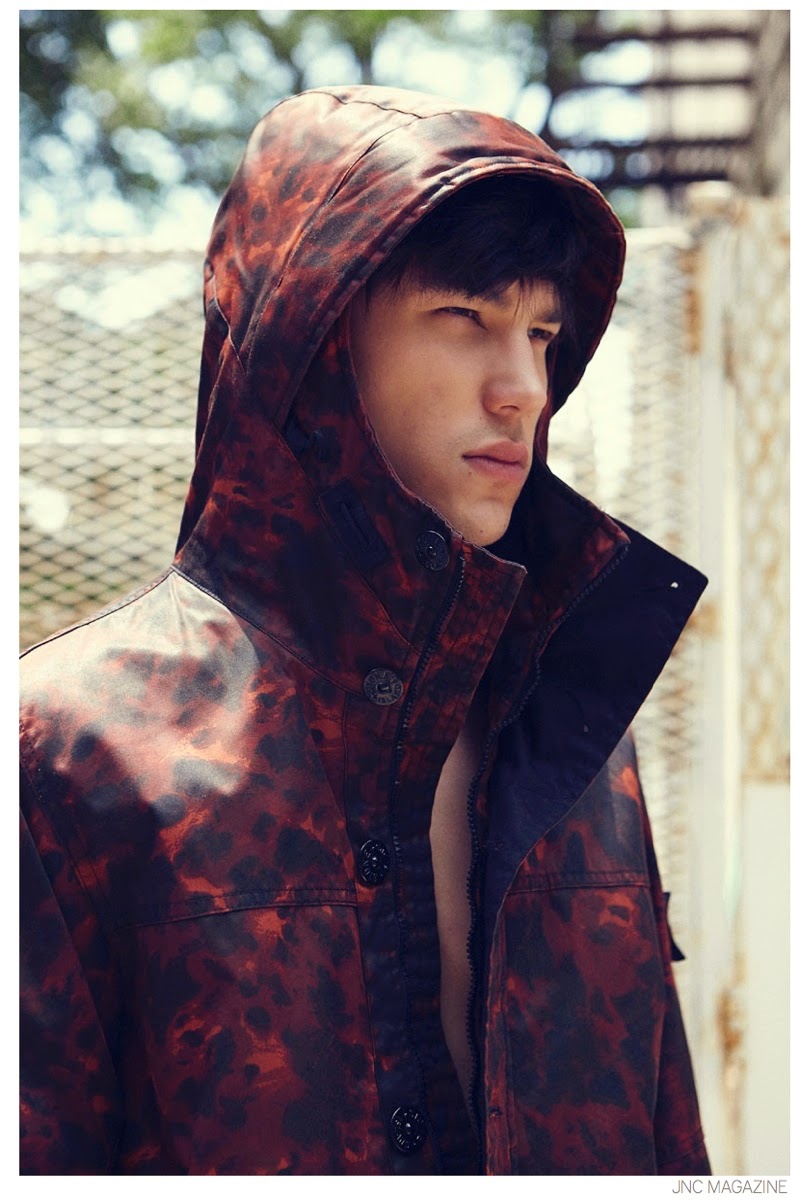 “Everyday Fashions-Photographer Gunnar Tufta connects with model Chris Colton for the latest issue of JNC magazine. Honing in on sporty outerwear fashions for everyday wear, stylist Shandi Alexander outfits Chris with a fun unexpected personality. From Isaora’s silver coat to Stone Island’s red parka or Tommy Hilfiger’s green parka vest, active outerwear gets a stylish boost in the fit and color departments. / Grooming by Michael Johnson (Factory Downtown).” – The Fashionisto