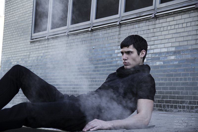 Mr. Petersen–Amer­i­can model Chris Petersen steps into the world of Brent Chua, con­nect­ing with the pho­tog­ra­pher for a smoky series. Clad in gar­ments, both draped and fit­ted, the DNA model finds a strong space, dressed in gar­ments as well as acces­sories from the likes of Prada and Marc Jacobs. Courtesy of – thefashionisto.com