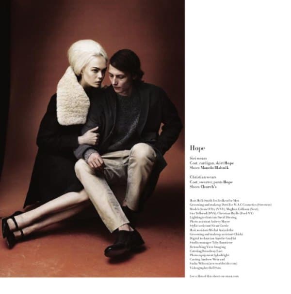 Photographed by Sebastian Faena for VMAN’s Scandinavian issue, Christian Brylle and Sean O’Pry get female companions for a his and her story styled by Mattias Karlsson. Executed with the utmost sophistication, Faena’s men take elegance to another level as joined by Siri Tollerød and Meghan Collison. – thefashionisto.com