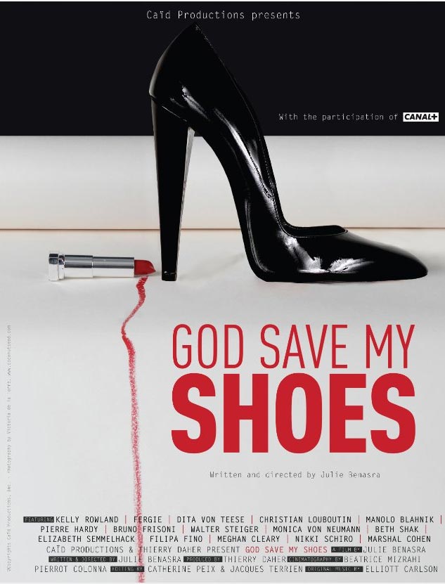 “A documentary about the relationship between women and shoes. Set on a quest to decipher—from a psychological, sociological, historical, cultural, and erotic perspective—the fiery emotions that shoes exert on most women (and on quite some men), God Save my Shoes went from New York to Los Angeles, Paris to Milan, Toronto and Florence to interview extreme shoe collectors, everyday women, such celebrities as burlesque dancer Dita Von Teese, Fergie of the Black Eyed Peas, former Destiny’s Child singer Kelly Rowland, Paris opera ballerina Marie-Agnès Gillot, and Baroness Von Neumann. We also turned to fashion historian Valerie Steele of the FIT in New York, Toronto museum curator Elizabeth Semmelhack, women’s marketing expert Mary Lou Quinlan, industry mogul Vincent Camuto, Filipa Fino of Vogue USA, Caroline de Fayet of ELLE magazine, Moulin Rouge dancers, shoe fetishists, and such designers as Christian Louboutin, Manolo Blahnik, Walter Steiger, Pierre Hardy, Bruno Frisoni, Vivienne Westwood, Robert Clergerie… all those that play a role in the ubiquitous shoe phenomenon!”