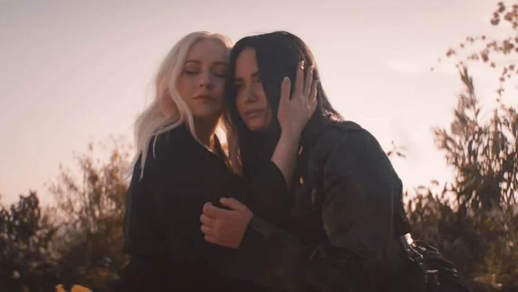 Featuring pop kitten Demi Lovato, the video opens with Demi and Xtina as bambinos playing in a field in a dream-like sequence before being abruptly kidnaped by a black armored duo with weapons and police enforcement attire ala The Handsmaid Tale.