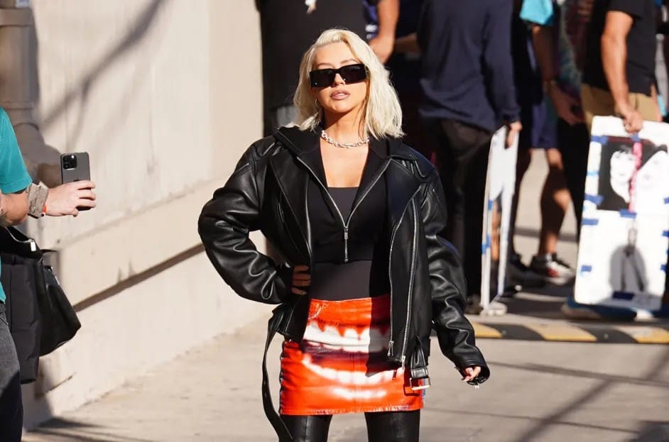 “Christina Aguilera made a late-night TV appearance on Monday (Oct. 16), and she made sure it was unforgettable. Decked out in leather, she opted for a more punk-rock look, but instead of showing off platform boots, she chose the one staple piece all wardrobes should have: an oversized leather jacket.