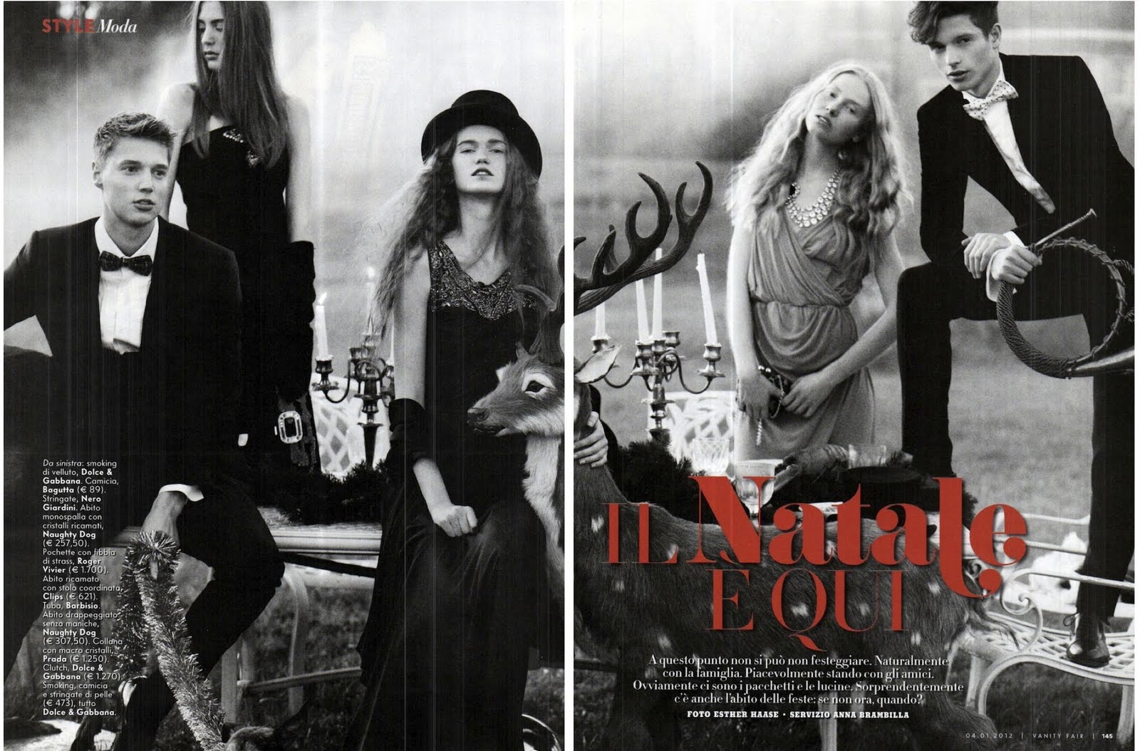 It’s a bohemian Christmas for Niklas Garn and Emil Rapp! For Vanity Fairy Italia’s latest issue, Niklas and Emil are shot by Esther Haase and styled by Anna Brambilla in festive garb for the Italian periodical and appear alongside Annika Dop and Michelle den Hollander for the countryside shoot. Courtesy of hommemodel.blogspot.com