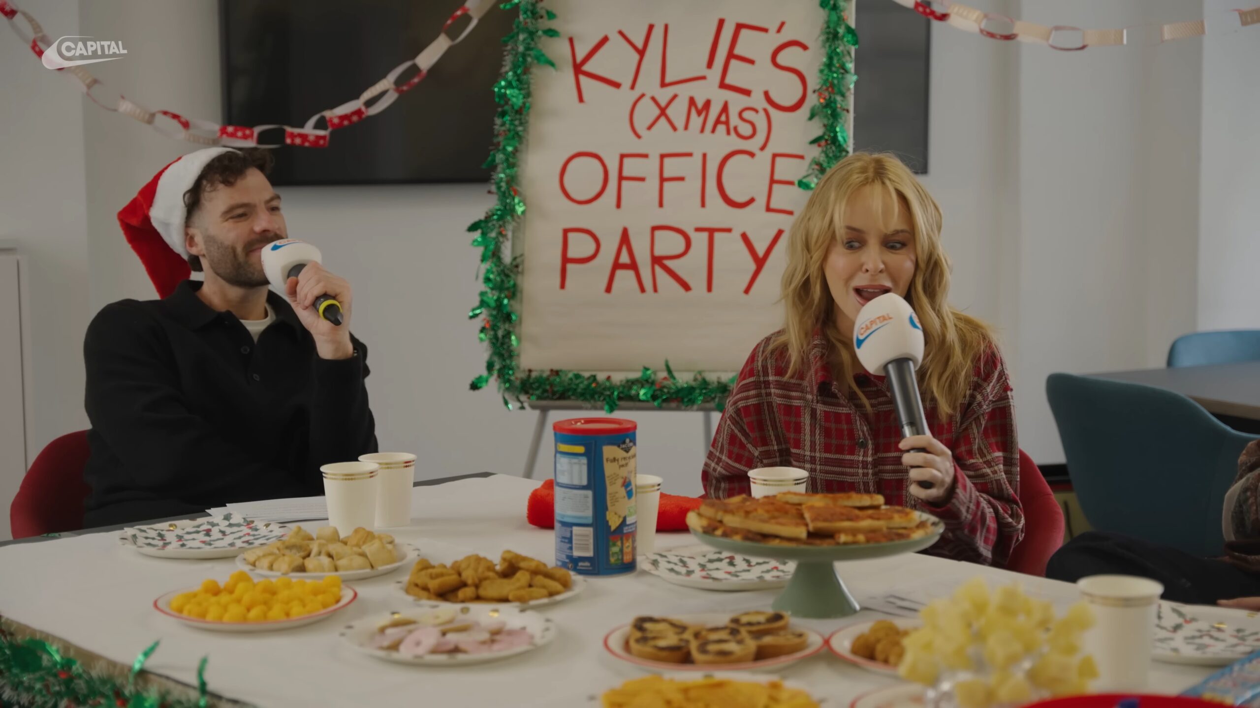 Kylie Minogue celebrates her first office party with Capital Breakfast and performs “XMAS”