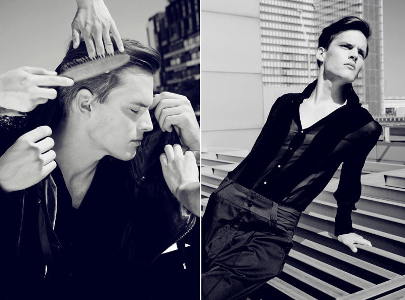 Photographed by Michelle Du Xuan, Bananas model Christopher Michaut gets dirty for a short outing quickly followed by a polished makeover with the combined efforts of stylist Quentin Costenoble, makeup artist Emilee Bak and hair stylist Yu Nakata. Courtesy of – thefashionisto.com
