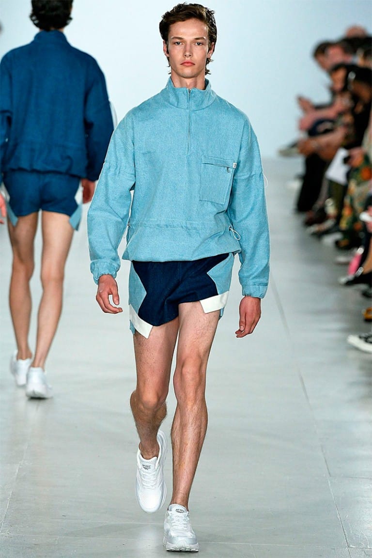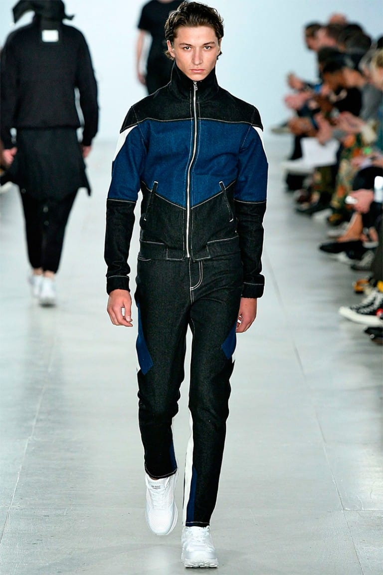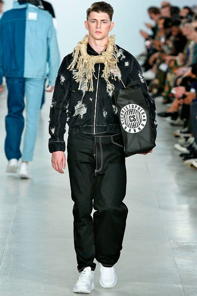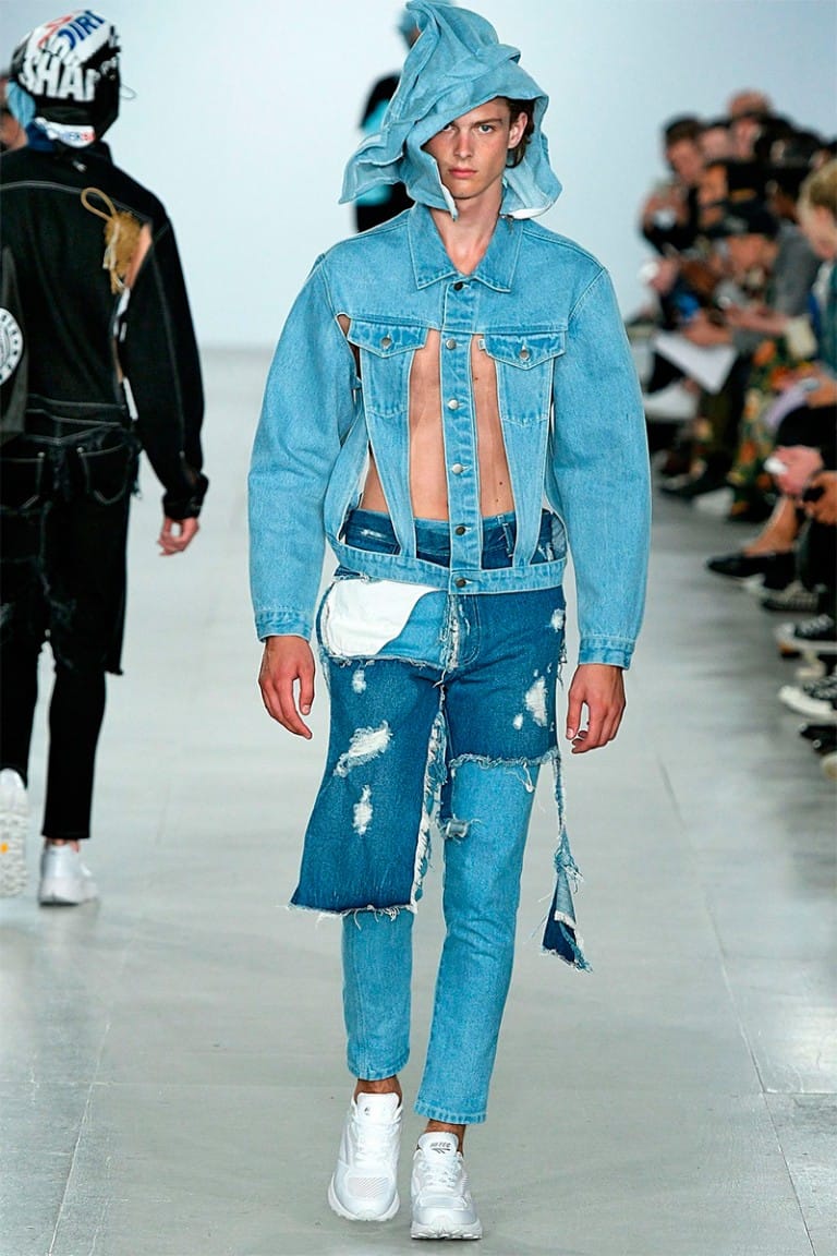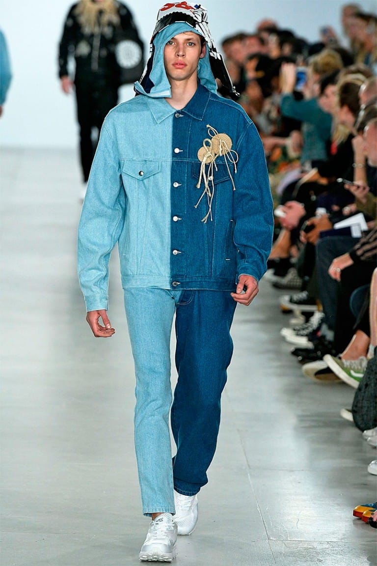 Christopher Shannon returns to the runway at LCM this season with a new attitude towards design. The “party is over” for Shannon and his love affair with technical fabrics as we see his Spring Summer ’17 collection made up of denims and cotton and a focus on fabrication and the design itself.