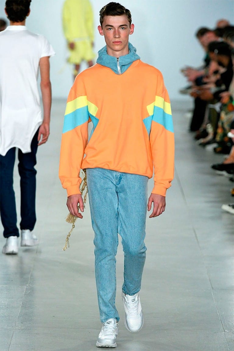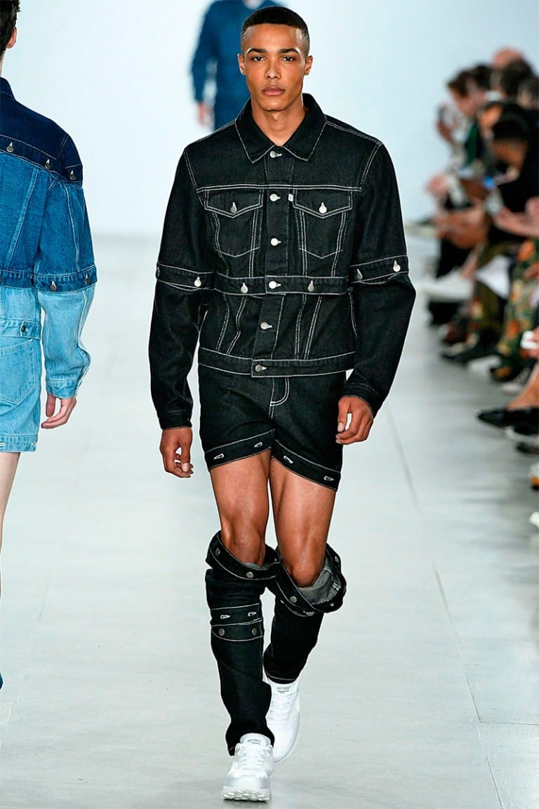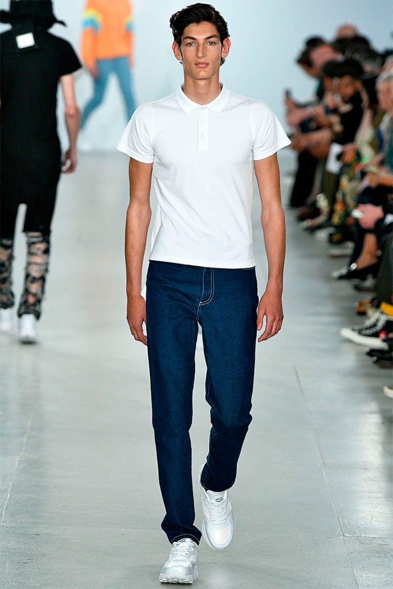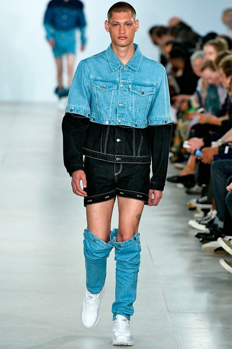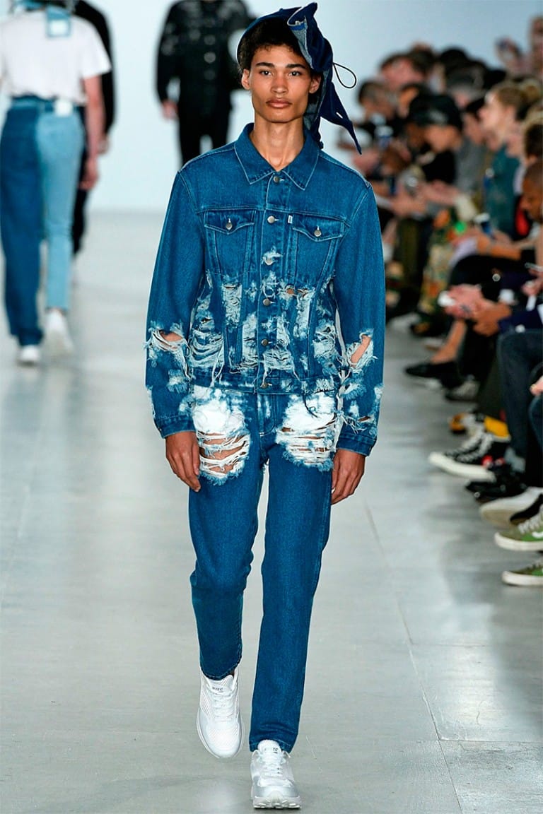 Christopher Shannon returns to the runway at LCM this season with a new attitude towards design. The “party is over” for Shannon and his love affair with technical fabrics as we see his Spring Summer ’17 collection made up of denims and cotton and a focus on fabrication and the design itself.