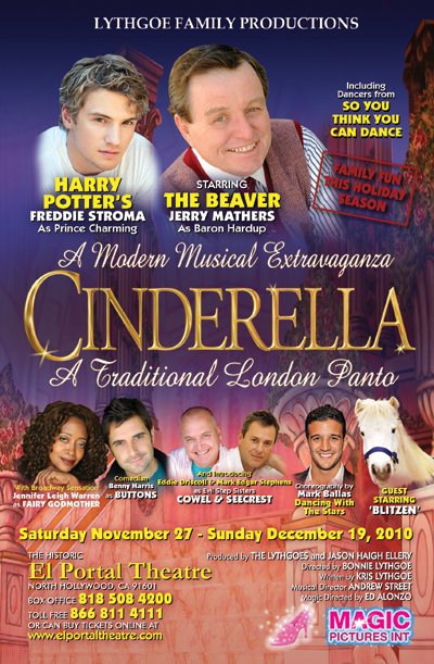 Come dig this “traditonal London panto” running from now until December 19, 2010 at the El Portal Theatre. “Traditional British pantomime is being produced and directed by The Lythgoe Family. Jennifer Leigh Warren plays (The Fairy Godmother) and Veronica Dunne stars as(Cinderella) while Neil Patrick Harris , served as a celebrity judge in the casting of the show.