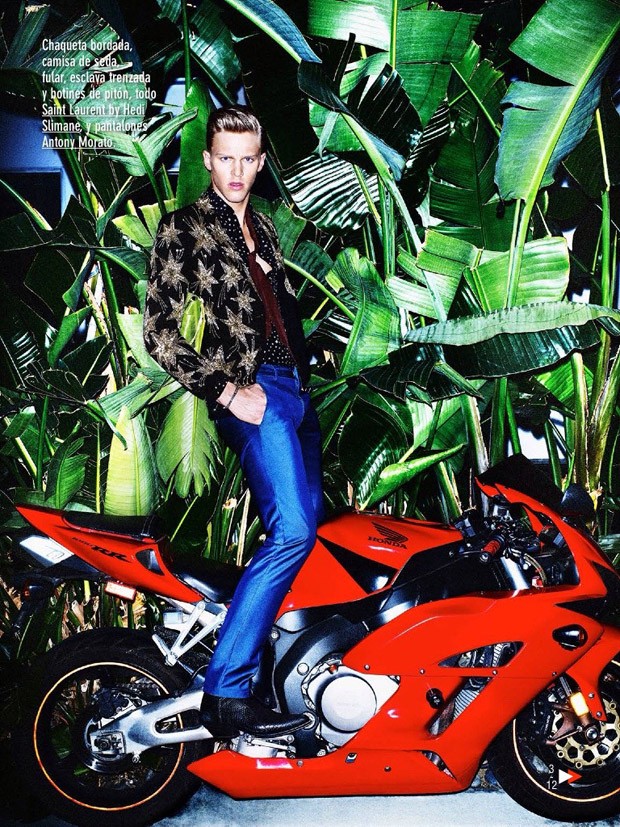 “Top model Clark Bockelman stars in Cowboy de Medianoche story captured for July August 2015 edition of GQ Spain by fashion photographer Tony Kelly. Styling is courtesy of Jesus Cicero with hair and makeup by Dimitris.” – Malemodelscene.net