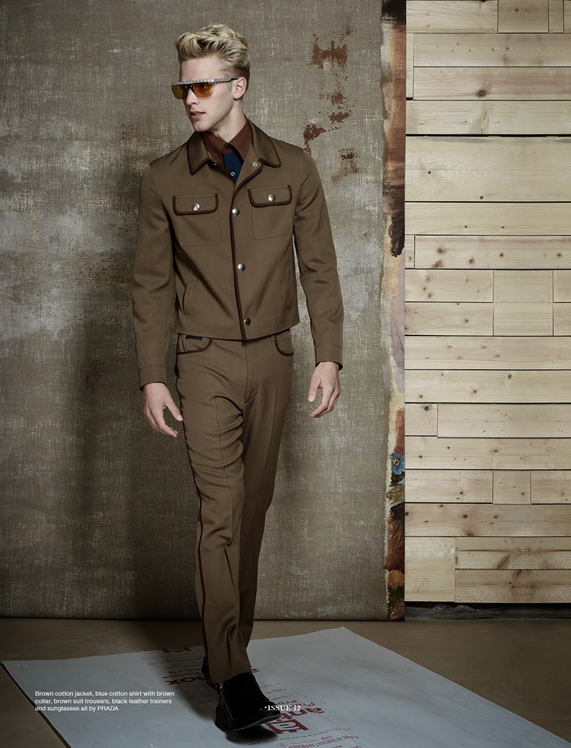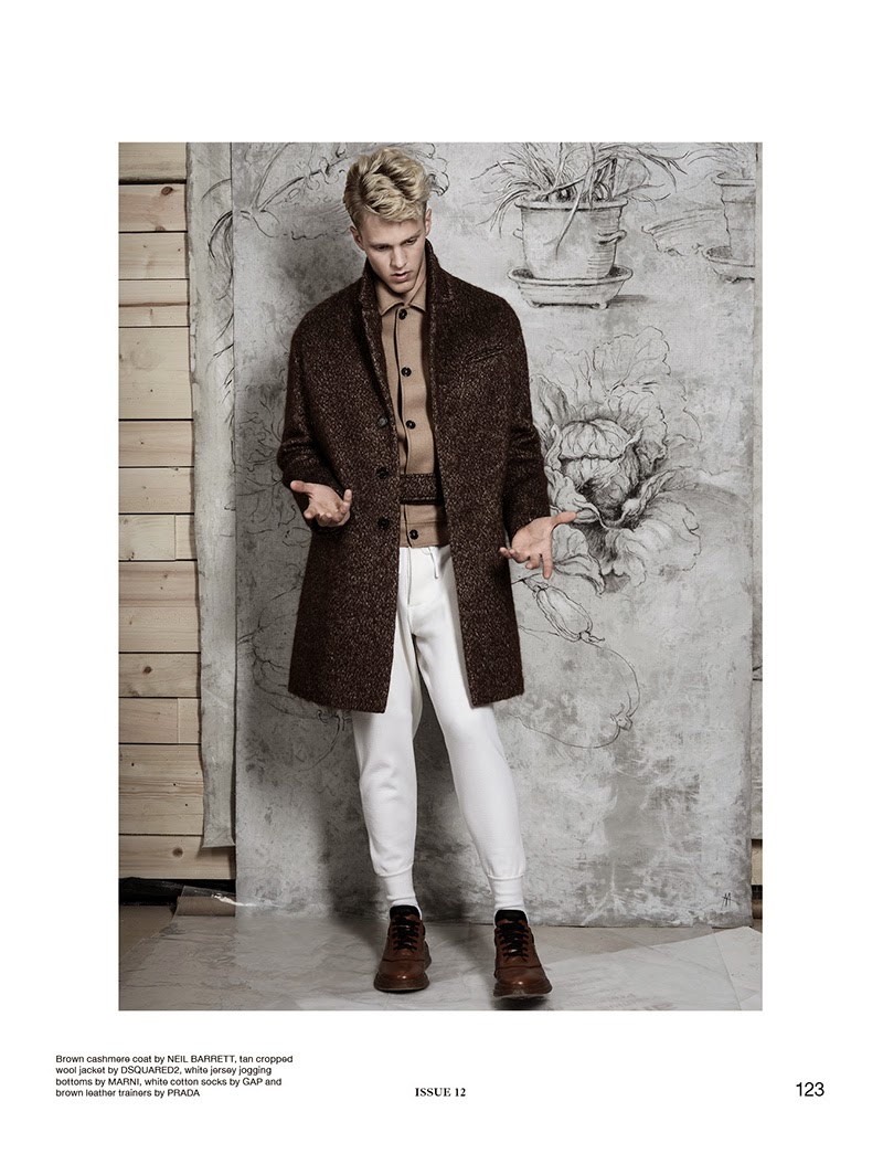 “Fall Escape–Stylist Andrew Davis pulls together rich chocolate hues for a fall outing from British magazine Rollacoaster. Photographed by fellow model Ryan Barrett, Calvin Klein favorite Clark Bockelman is the story’s star. Posing for nonchalant images, Clark is captured in fall/winter 2014 pieces from labels including Louis Vuitton, Neil Barrett, Prada and if course Calvin Klein Collection.” – The Fashionisto