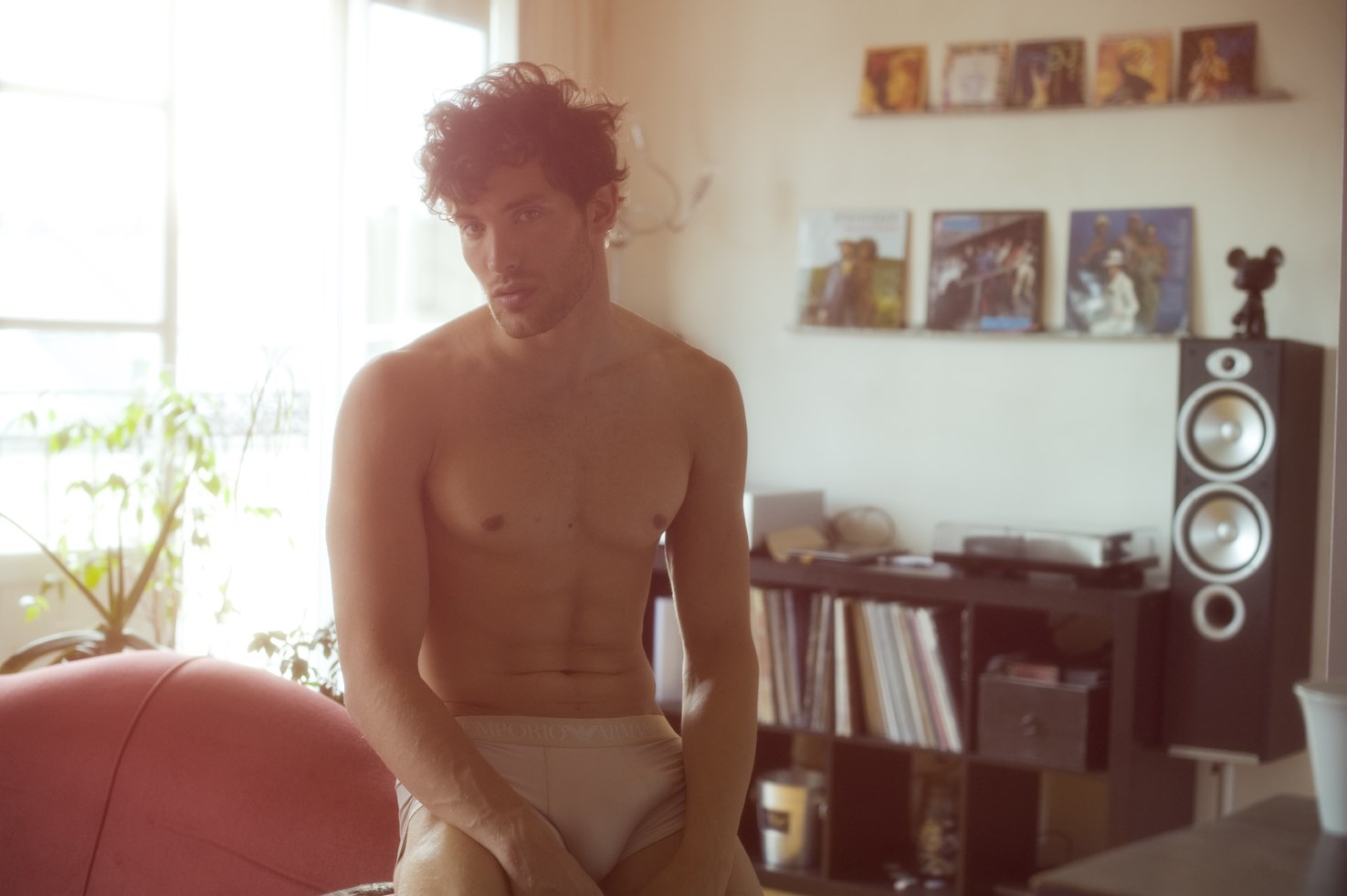 “French finswimming world champion and model Clément Becq at Mademoiselle Agency Paris is photographed by Nicolas Aristidou in a pair of Emporio Armani underwear for Un Homme Un Slip…