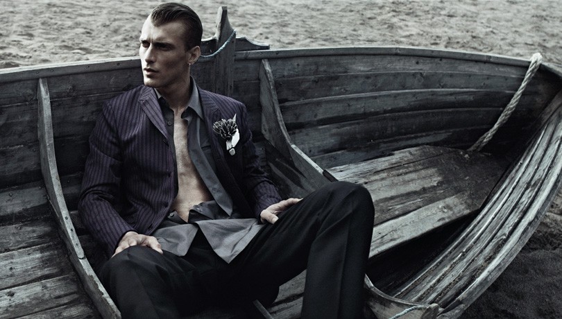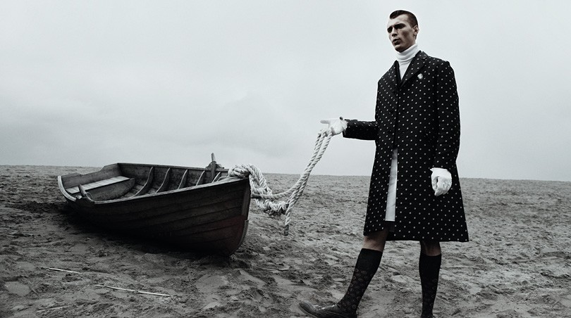 French model Clément Chabernaud is photographed by Axel Lindahl and styled by Emma Thorstrand in the Prada story ‘Stuck’ for Hercules Universal. Courtesy of – Homotography