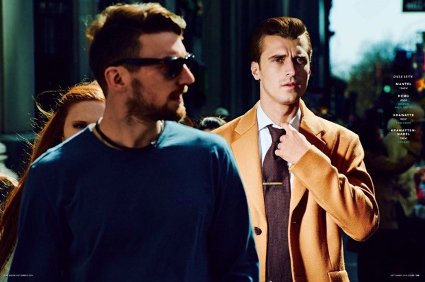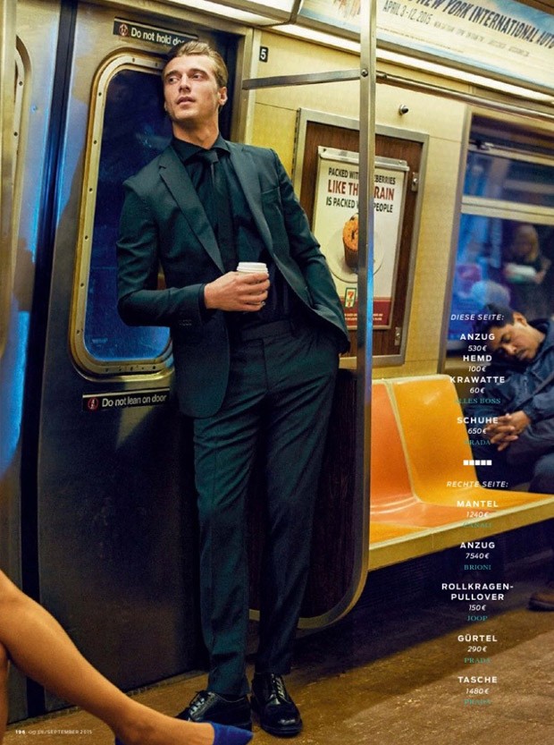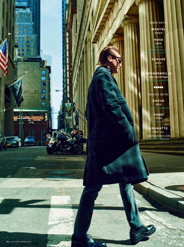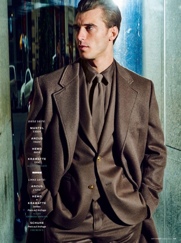 “French supermodel Clement Chabernaud takes the pages of GQ Germany‘s September 2015 issue with Wallstreet story captured by fashion photographer Philippe Vogelenzang. In charge of styling was Tobias Frerick with hair and makeup by Nabil Harlow.” – Malemodelscene.net