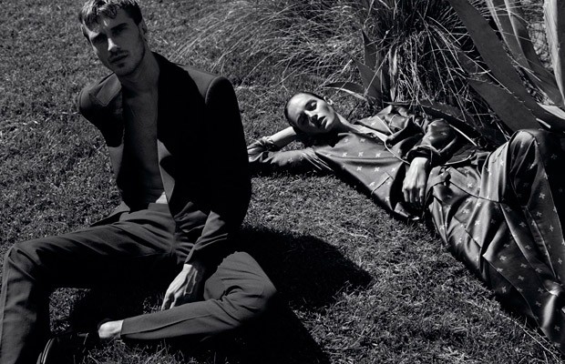 “Supermodels Clement Chabernaud and Vivien Solari join forces for Dream Catcher story captured by fashion photographer Josh Olins for WSJ. Magazine‘s latest edition. In charge of styling was Clare Richardson, with hair by Tomo Jidai, makeup by Sally Branka, and manicure by Tracy Sutter. Set design is work of Kadu Lennox at FRANKREPS.” – Malemodelscene.net