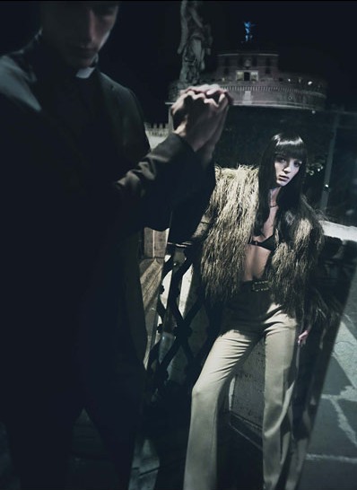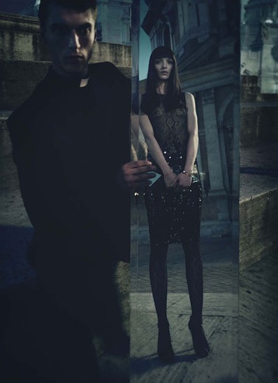 ‘Clément Chabernaud joins the enigmatically gorgeous Mariacarla Boscono in the August 2010 issue of W magazine. The sinisterly glamorous Forever Gucci is photographed by Paolo Roversi and styled by Anastasia Barbieri, with hair by Marc Lopez, make-up by Sally Branka and manicures by Marcella Vizioli’ – Courtesy of Homotography.blogspot.com