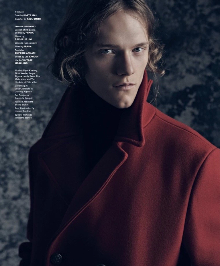 “Ektor Wedin, Jordy Baan, Ryan Keating, Serge Rigvava, Tim Meiersone and Ton Heukels, shot by Marcello Arena and styled by Simona Carippo, for the latest issue of Essential Homme magazine.” – FY Magazine.es