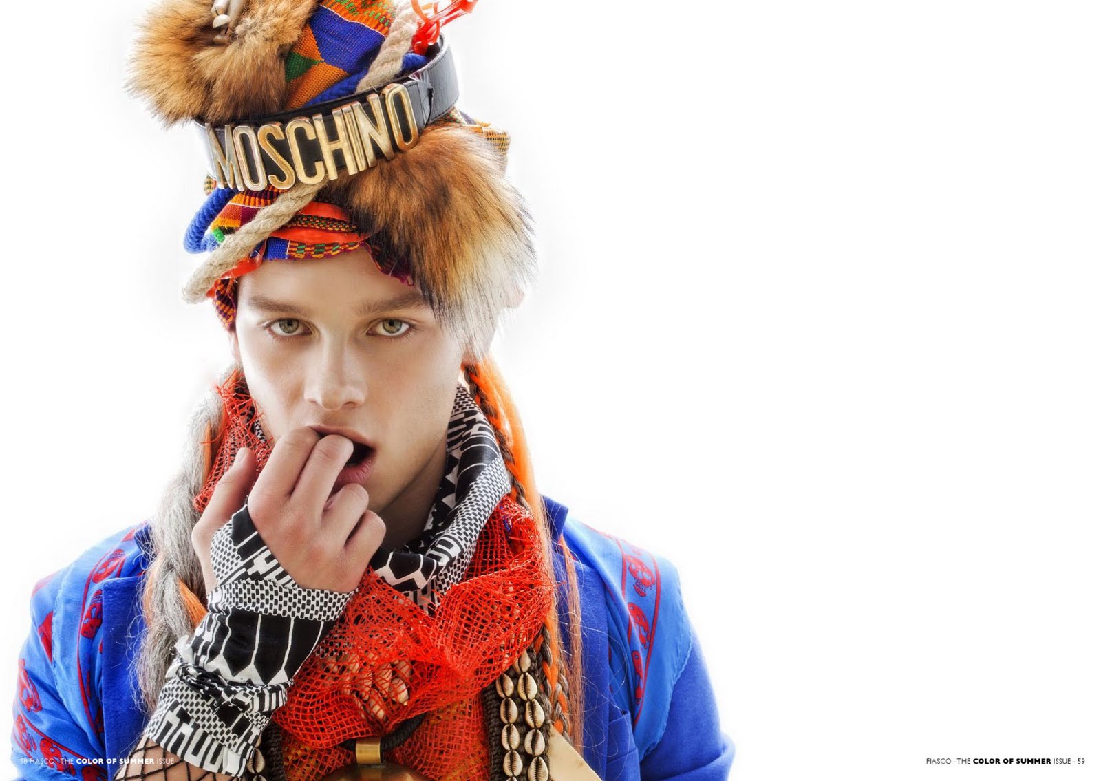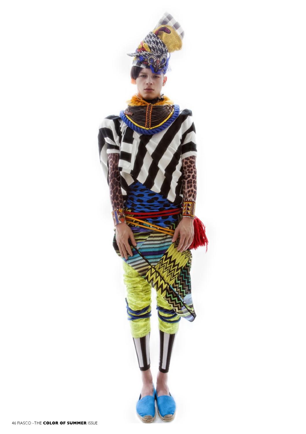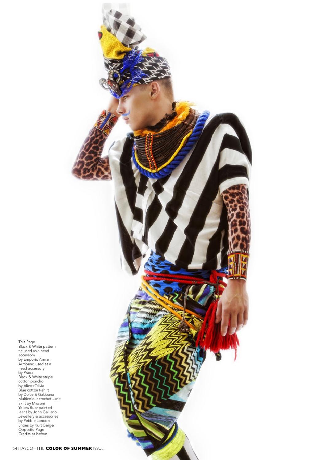 In Artur Olecki’s second editorial for Fiasco’s 12th issue, he wears a hodgepodge of patterns, prints, colors and textures and encapsulates the issue’s theme: Colors of Summer. The expert styling was done by Max Souffraiu while the shots were taken by Iakovos Kalaistzakis. Courtesy of – hommemodel.blogspot.com