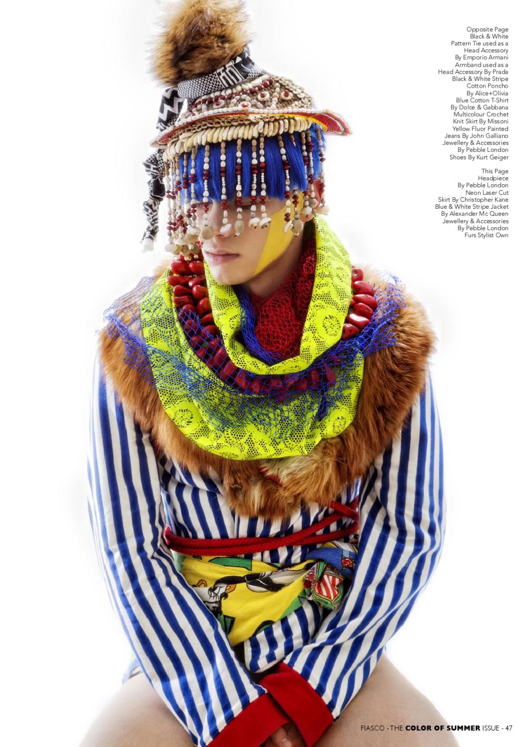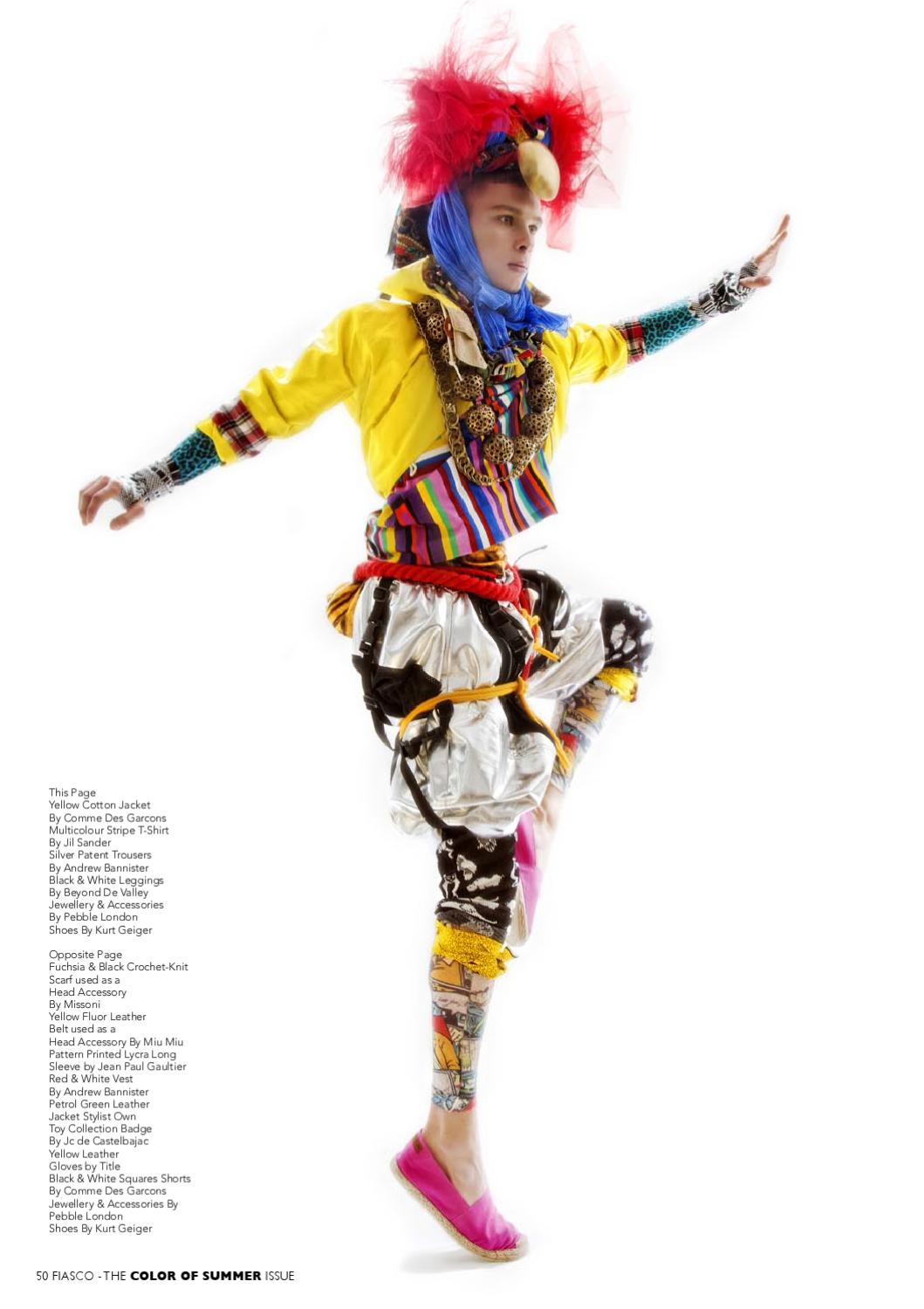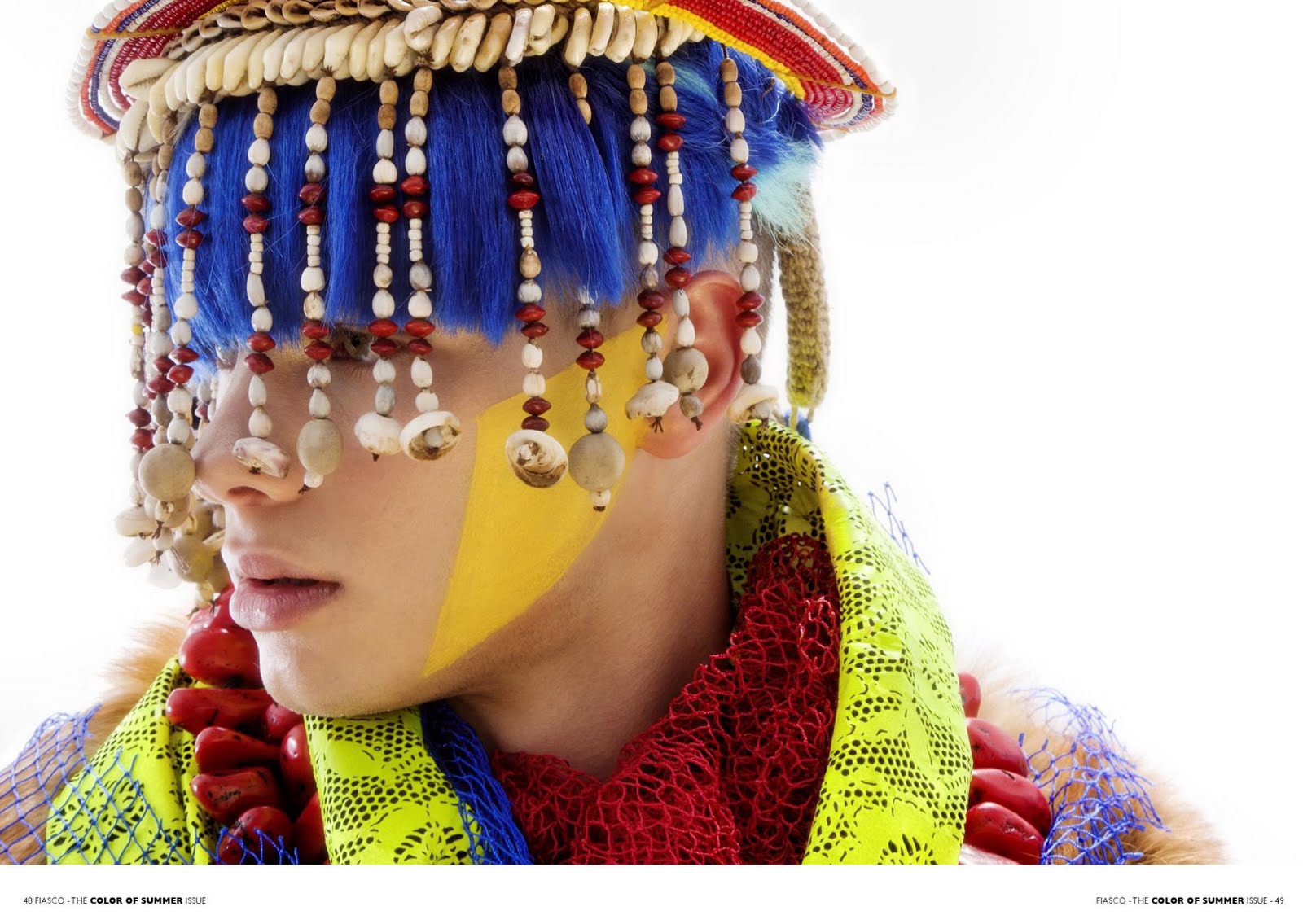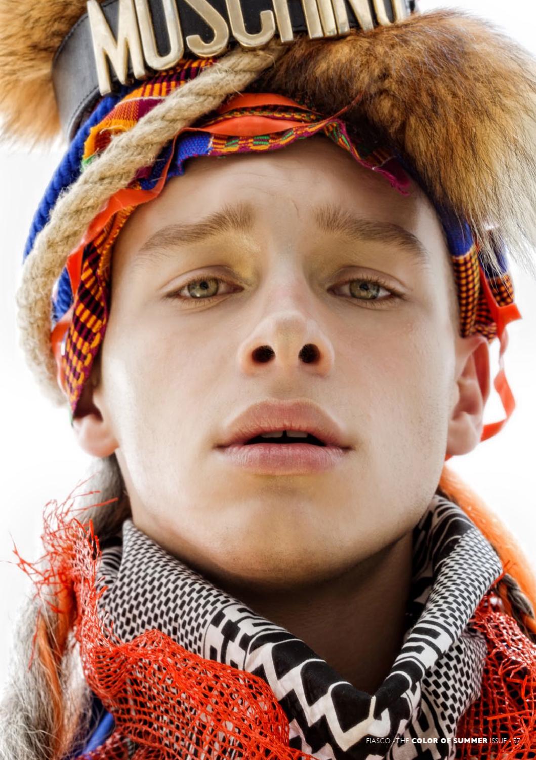 In Artur Olecki’s second editorial for Fiasco’s 12th issue, he wears a hodgepodge of patterns, prints, colors and textures and encapsulates the issue’s theme: Colors of Summer. The expert styling was done by Max Souffraiu while the shots were taken by Iakovos Kalaistzakis. Courtesy of – hommemodel.blogspot.com