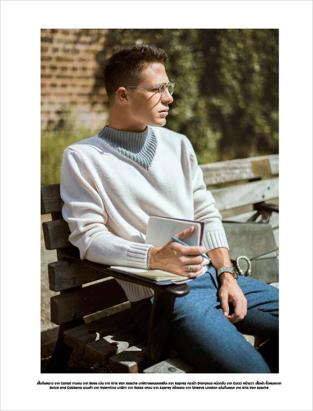 “Top model and actor Colton Haynes lands the cover story of L’Optimum Thailand‘s November 2015 edition lensed by fashion photographer Oli Kearon. Art direction and styling is work of Steven Doan at Wilhelmina One, with hair and makeup by Kenny Leung at Carol Hayes Management using Aveda. For the session Colton is wearing latest Autumn Winter 2015 looks from Louis Vuitton, Burberry, Valentino, Gucci, Dolce & Gabbana, Coach, Giorgio Armani, Canali, Hugo Boss and many more.” – Malemodelscene.net