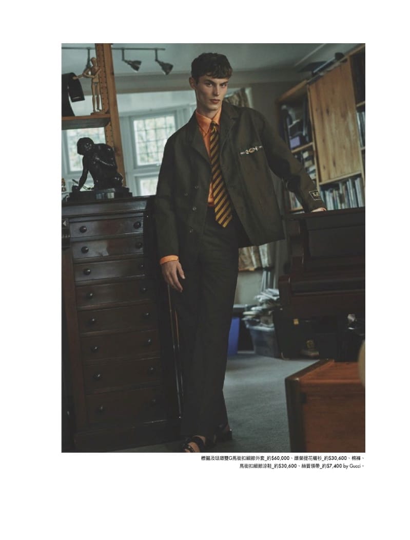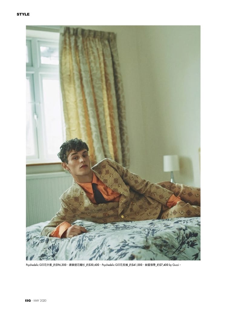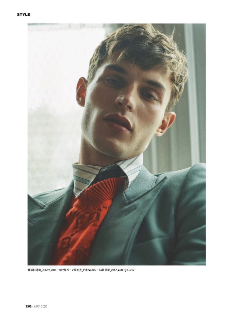 “On the heels of a Tommy Hilfiger campaign, model Kit Butler stars in a new story for the May 2020 edition of Esquire Taiwan. Appearing in “Coming Home,” Kit is photographed by Kim Hyungsik. The British model retreats indoors for a stylish editorial that features clothes from Gucci’s spring-summer collection. Stylist Ko Donghui outfits Kit in everything from flared denim jeans and cable knitwear to the Italian brand’s popular GG belt.” – TheFashionisto.com