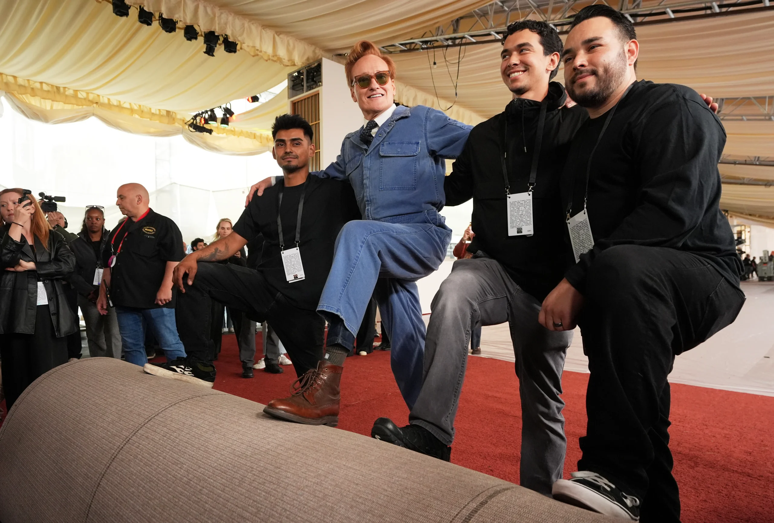 Conan O’Brien visiting the 2026 Oscars red carpet build in Hollywood. Conan O’Brien visiting the 2026 Oscars red carpet build in Hollywood.
