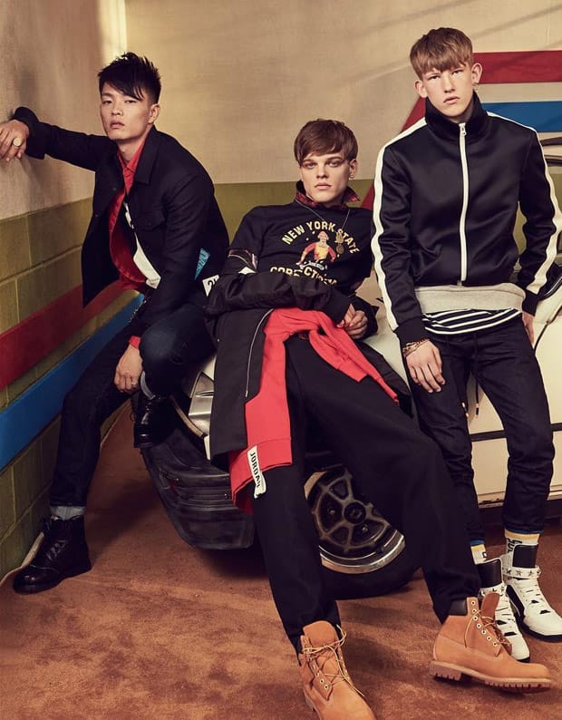 “Models Connor Newall, Reid Rohling, and Satoshi Toda star in Peacebird‘s Fall Winter 2016.17 menswear advertisement captured by fashion photographer Shxpir. Styling is work of Aeri Yun, with set design from Todd Wiggins, and casting direction by David Chen. Makeup is courtesy of Mariel Barrera, with hair styling by Brent Lawler. Production by Ray Yi.” – Malemodelscene.net