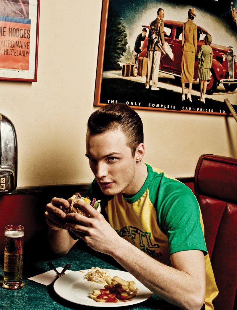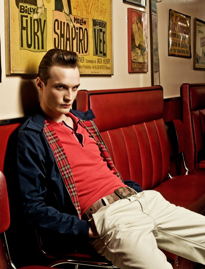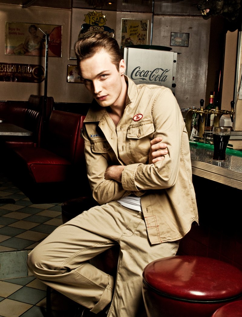 ‘hotographer Dale Grant and stylist Bodo Ernle’s (Nina Klein) latest adventure take the talented duo to Jimmy’s Diner in Berlin for a nostalgic shoot featuring Conrad Matschke. Dressed down with a subtle cool and groomed by Linda Frohriep (Nina Klein), Conrad comes out on top–channeling the image of a modern-day James Dean.’ – thefashionisto.com
